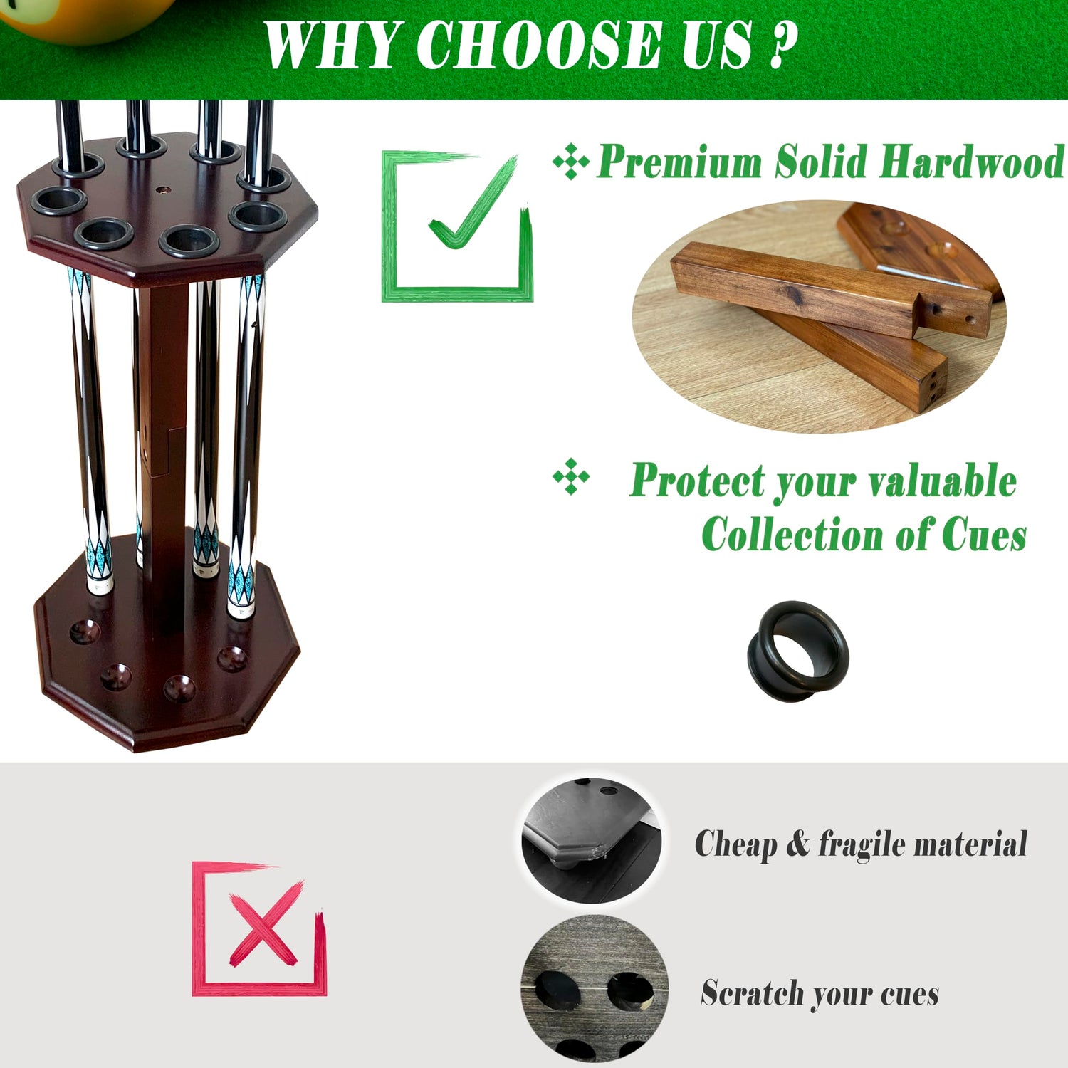 Details: The pool cue holder holds up to 8 cue sticks with balance & sturdiness