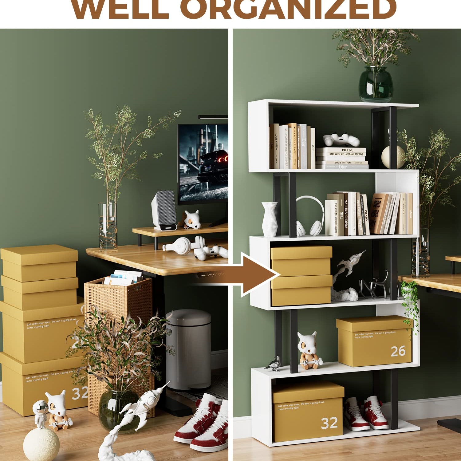 - 【5/6-tier S-shaped Bookcase】Perfect for organizing books, magazines, plants and other items in a neat and stylish manner