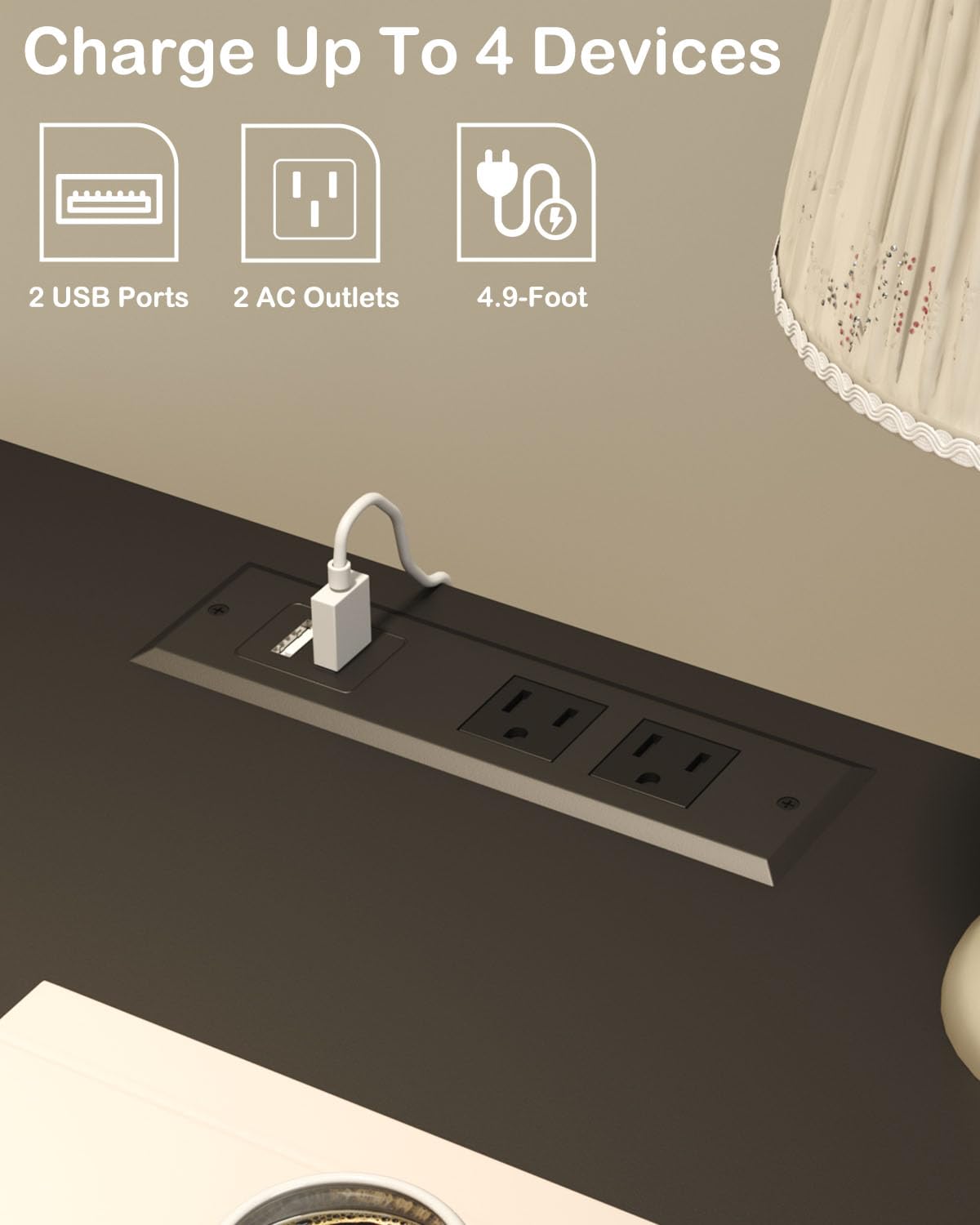 - 【Beside Table with Charging Station】There is 2 AC outlets and 2 USB ports on top of the nightstand, so you can conveniently charge your electronic devices without having to worry about plugs being too far away or inconvenient to build up with cords