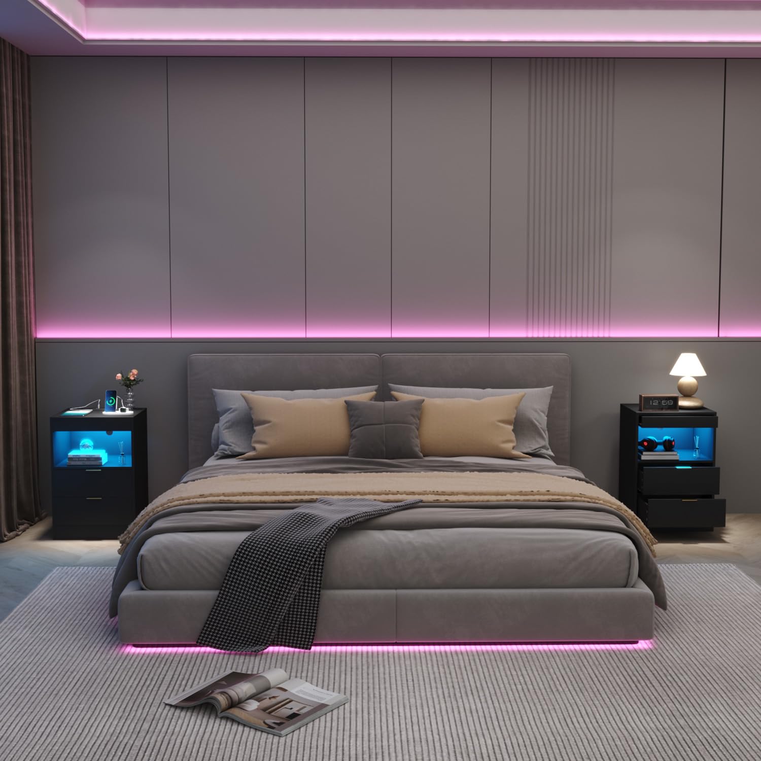 - 【Multifunctional Design】This modern nightstand is not just an ordinary drawer, but also comes with multi-colour LED Light and socket functions. You can freely set the brightness, color, mode and speed, and design your light show to your heart's content, allowing you to enjoy a more convenient and happy living experience by the bedside