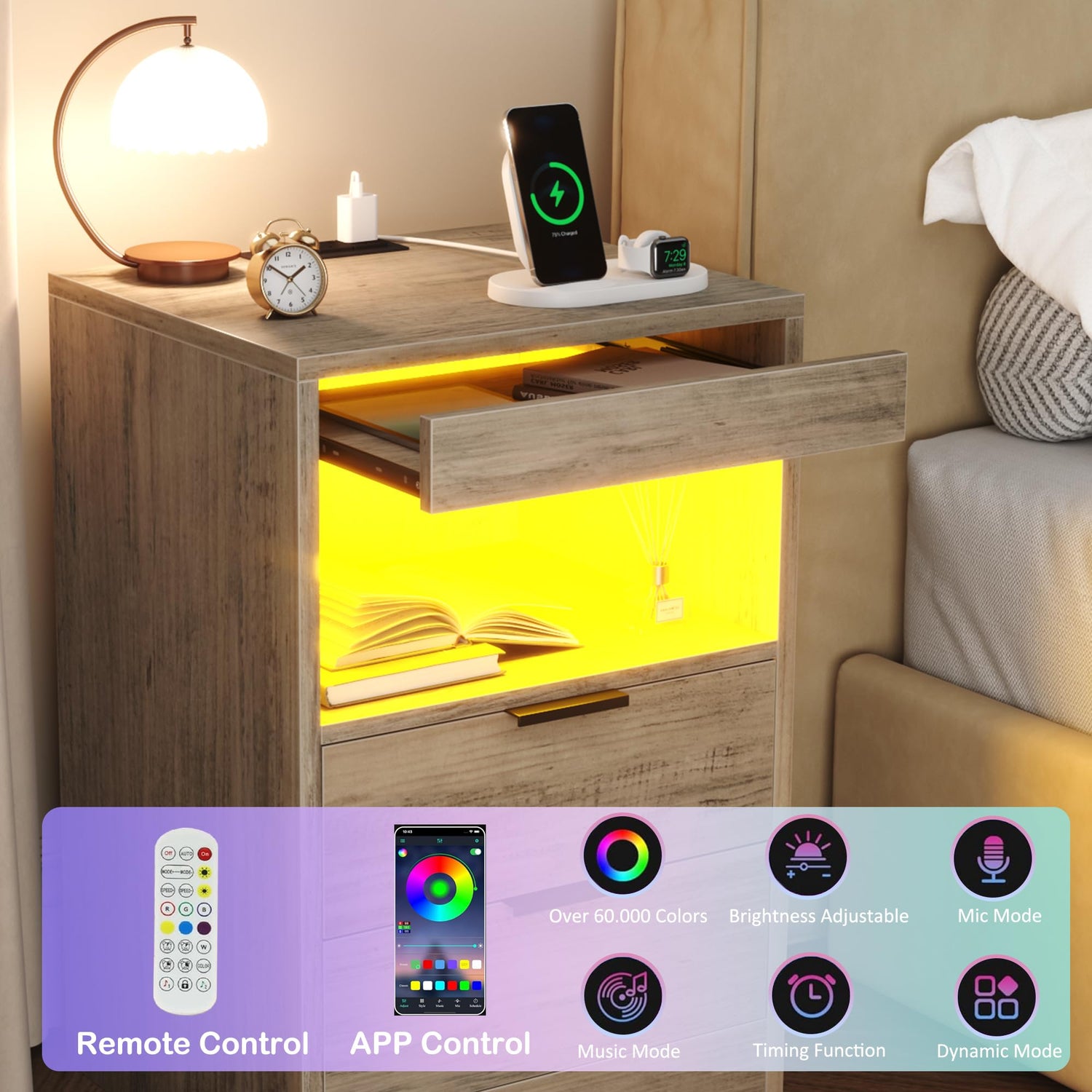 - 【Nightstand with LED Lights】The LED light strip can be controlled by remote and APP, which conveniently and quickly provides the light you need, making it easier for you to read or do other activities in the dark, creating a cozy nighttime atmosphere and reducing eye irritation