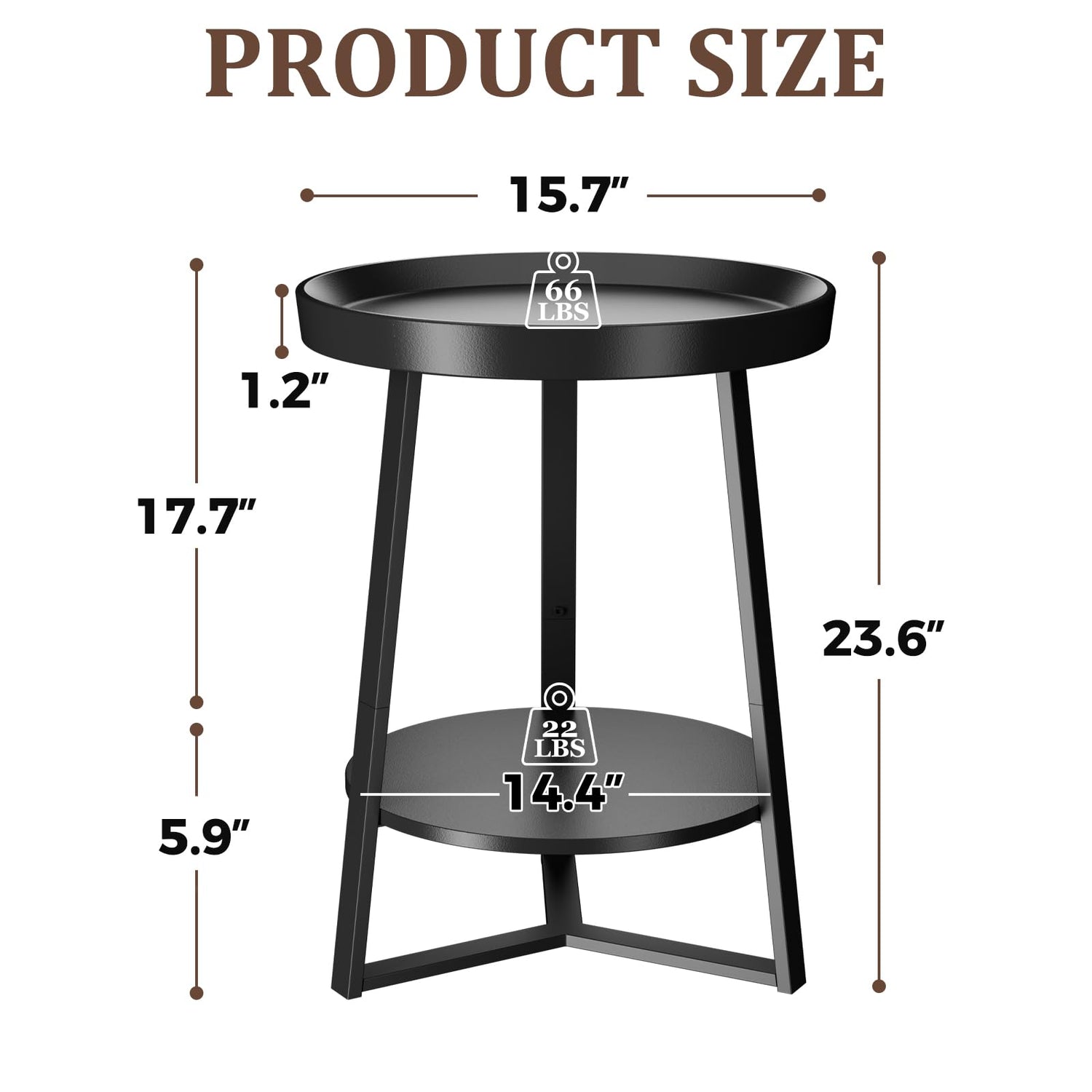 - 【2-Tier Small End Table】 This little table is lightweight, compact and easy to move. Rounded edge design can prevent potential damage. Without angular corner, it’s so reassuring even your naughty child runs around. 2 tier open shelf design of small table for easy access and storage
