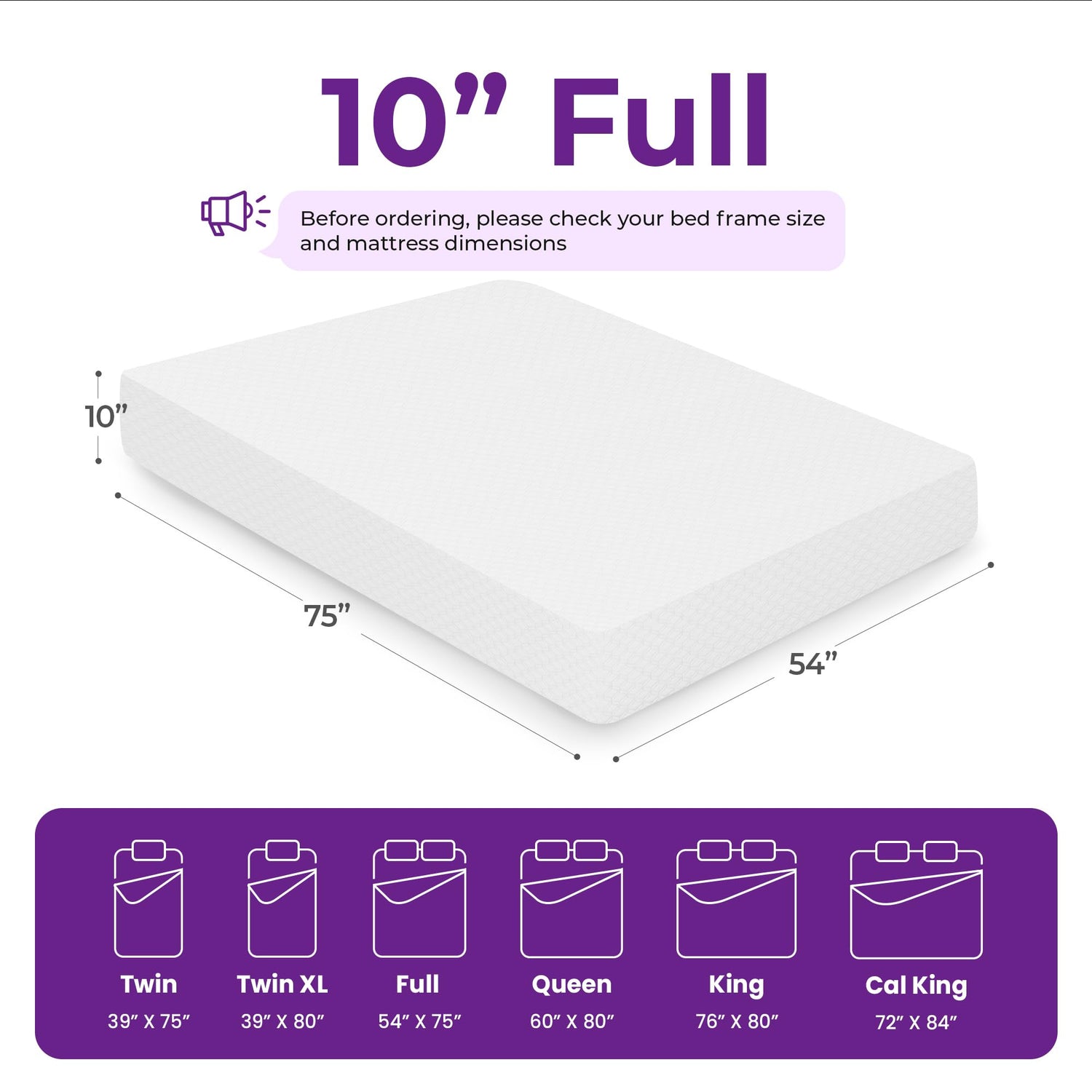 GAESTE 10 Inch Full Cooling Gel Memory Foam Medium Firm Mattress Breathable Pressure Relief CertiPUR-US Certified Mattress-in-a-Box for Kids and Adults No Fiberglass (Full, 10 in)