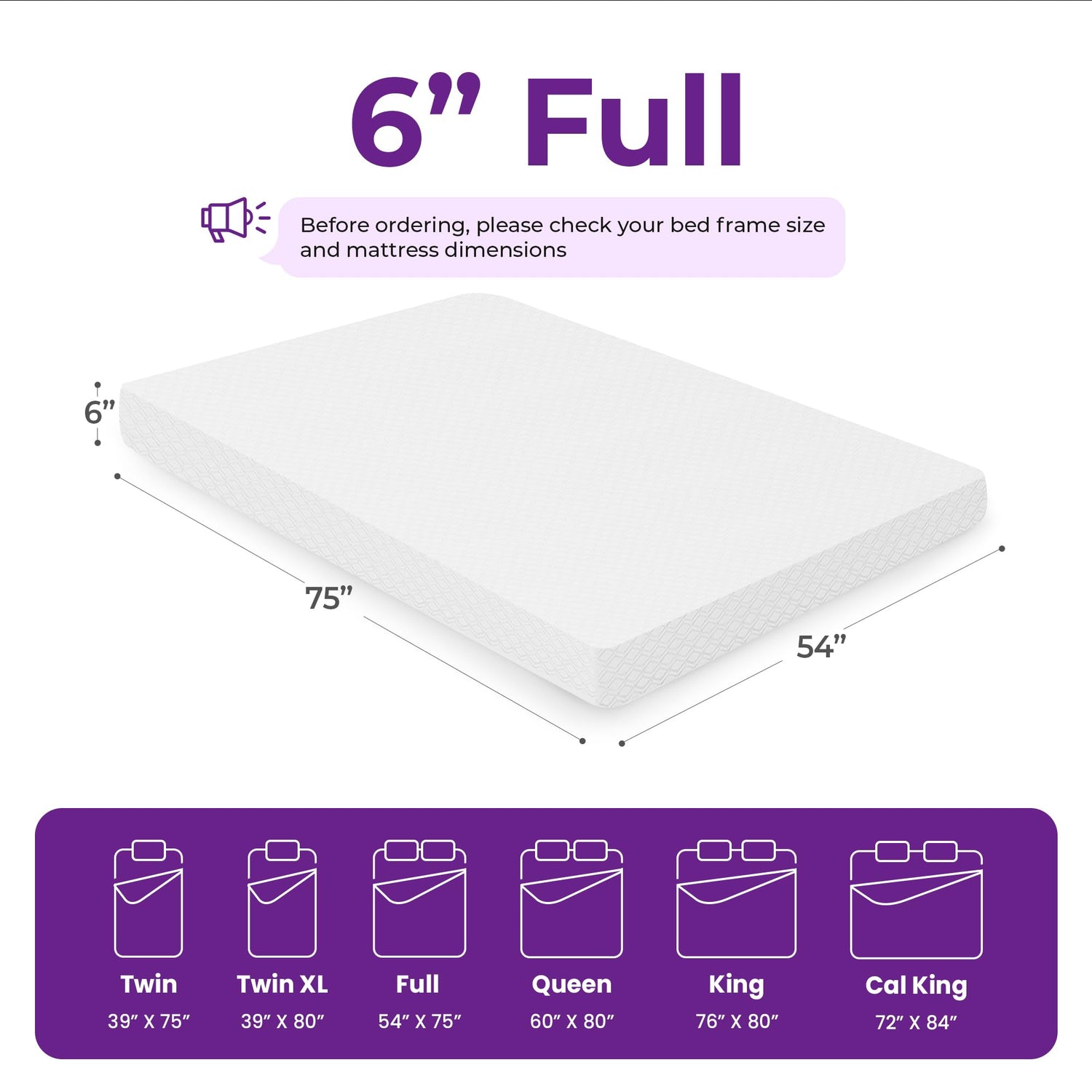 GAESTE 6 Inch Full Cooling Memory Mattress Medium Firm CertiPUR-US Certified Pressure Relief & Cool Sleep Mattress-in-a-Box Comfort & Supportive Fiberglass Free (Full, 6 in)