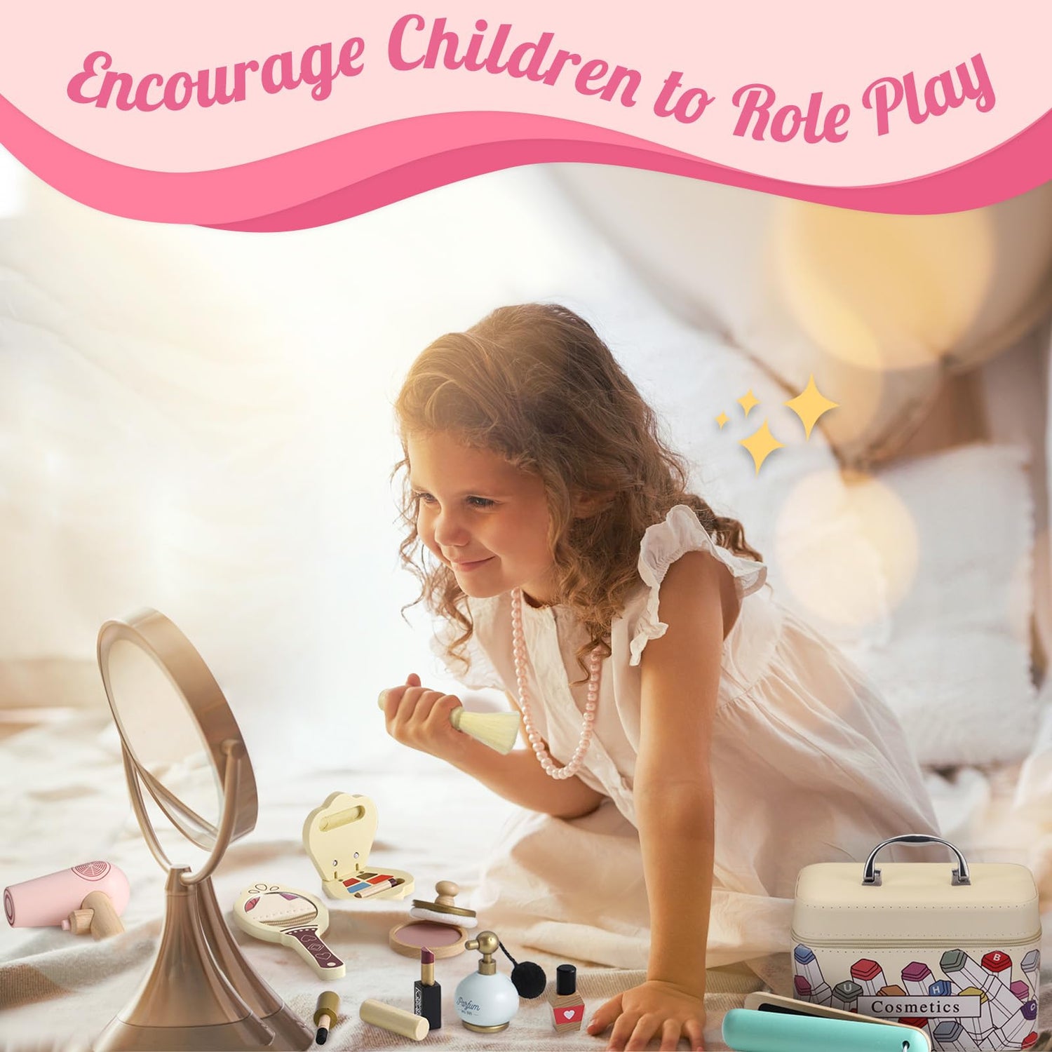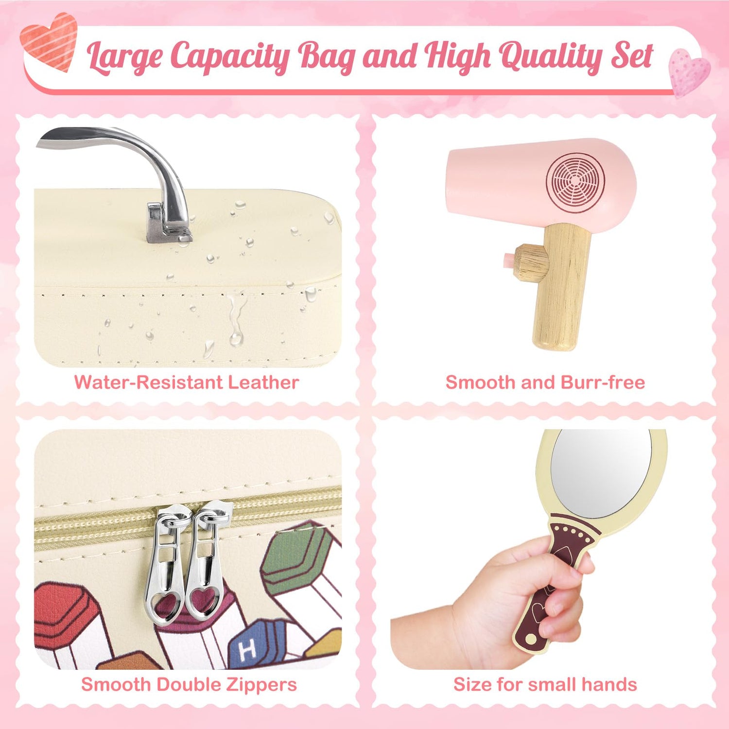 - 【EDUCATIONAL & FUN】Perfect pretend wood makeup toys, develop children's flexibility and creative ability; cultivate support social and emotional development in parent-child interaction, cultivate children's self-esteem and self-awareness; make new friends in the game, develop thinking, learning and problem-solving ability.