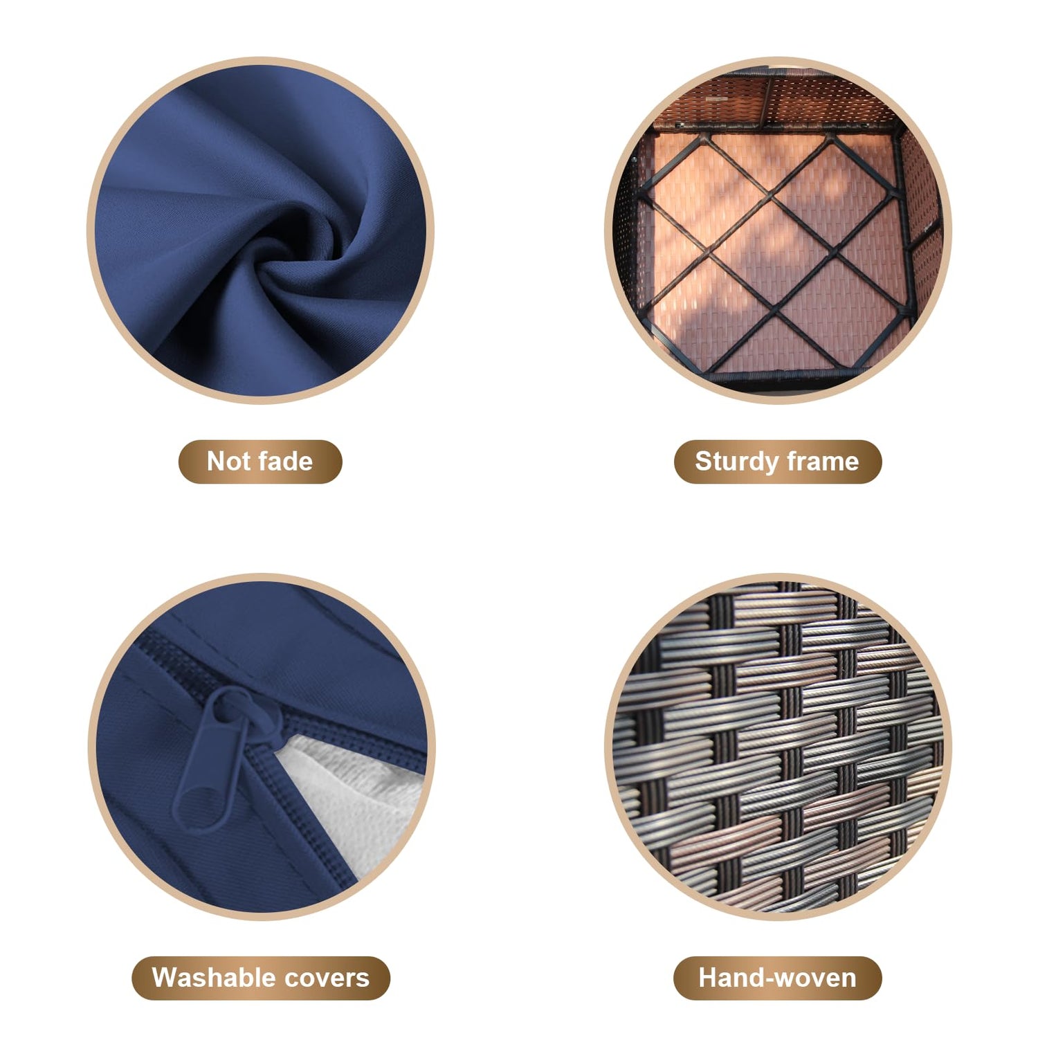- Sturdy Material: this outdoor patio furniture is made of high-quality PE rattan, it is durable. And the strong metal frame of the outdoor furniture set keeps the stability and balance.