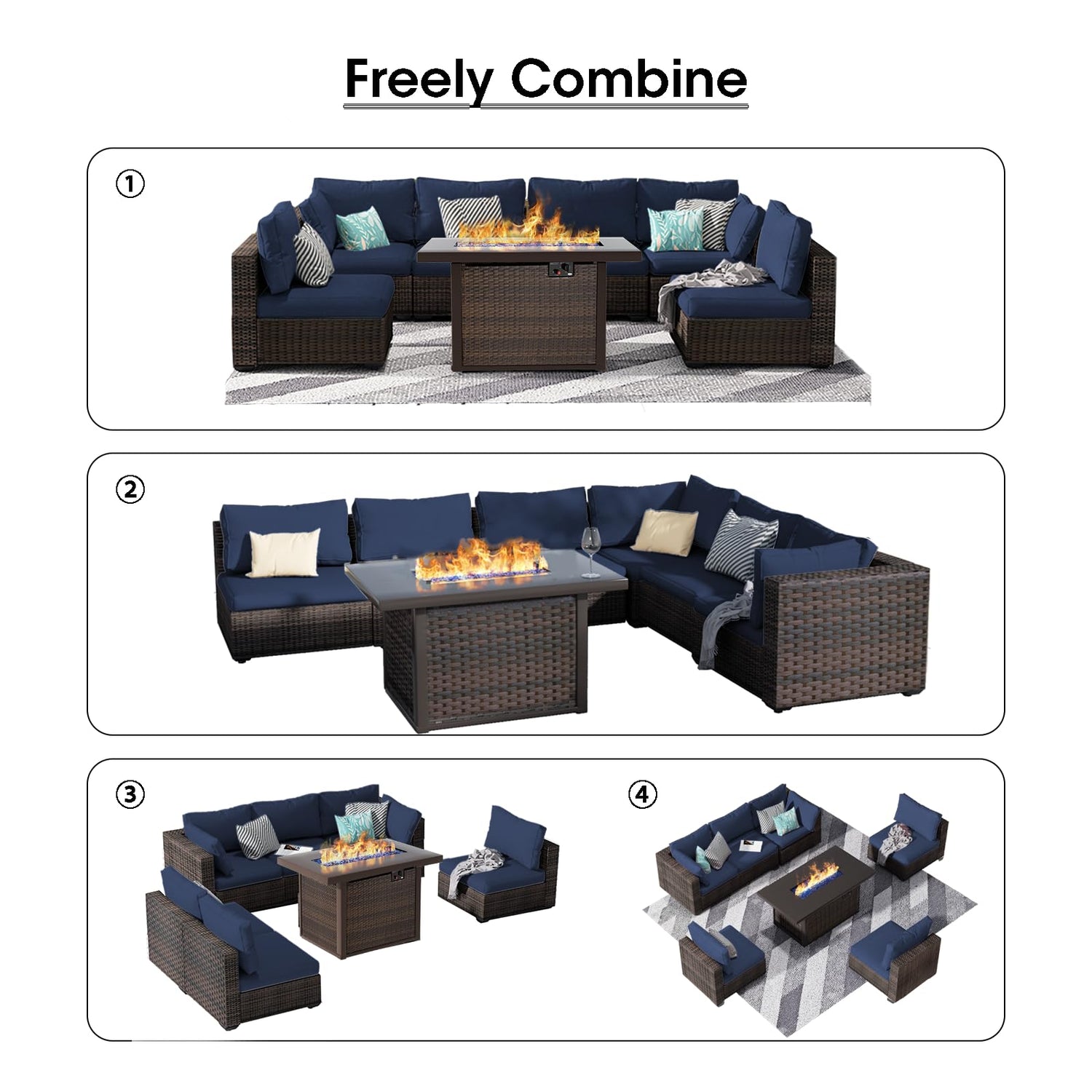 gaildon 7 Piece Patio Furniture Set with 42" Fire Pit Table Outdoor Sectional Conversation Sofa Set with Coffee Table and Comfortable Cushions, Blue