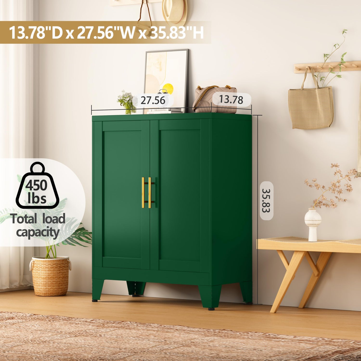 GAIOUS 35.83" Metal Pantry Storage Cabinet with 2 Doors and 2 Adjustable Shelves, Green Freestanding Hutch for Kitchen/Laundry/Living Room/Bedroom