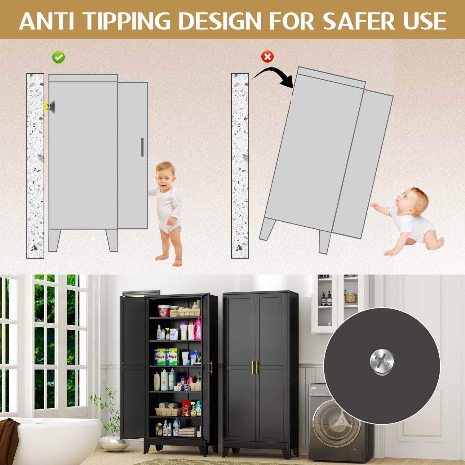 - 『Multifunctional Cabinet』Our 2 door metal cabinet features an freestanding design, which you can use for pantry cabinet, food cabinet, kitchen cabinet, kitchen cupboard, utility cabinet, laundry room cabinets, bathroom cabinet, bedroom wardrobe, bookcase, tool cabinet, file cabinet, appliance cabinet, etc. It will be your good choice for storage and organization