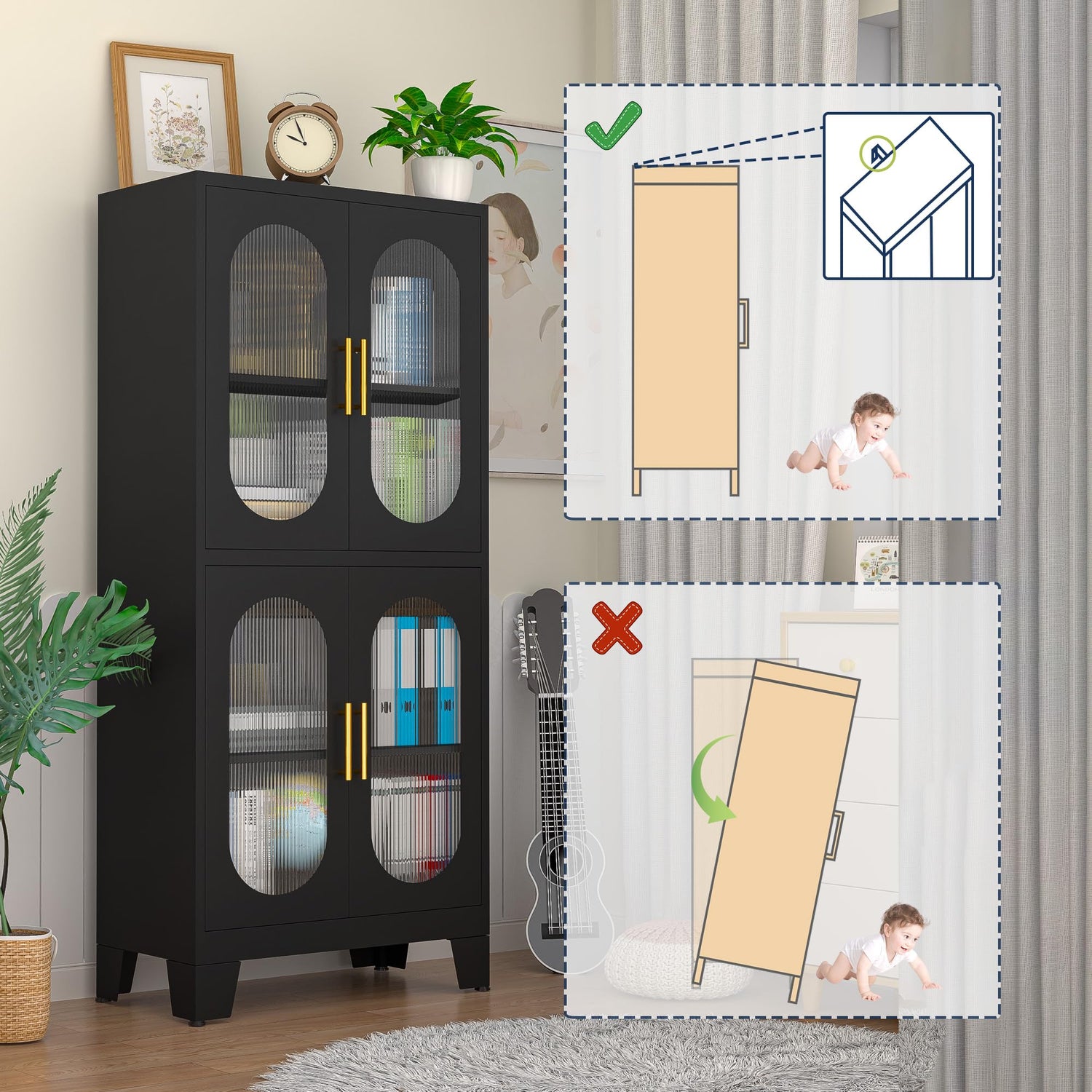 GAIOUS Black Kitchen Pantry Cabinet, Pantry Storage Cabinet with Acrylic Glass Doors and Adjustable Shelves, Metal Storage Cabinet for Kitchen,