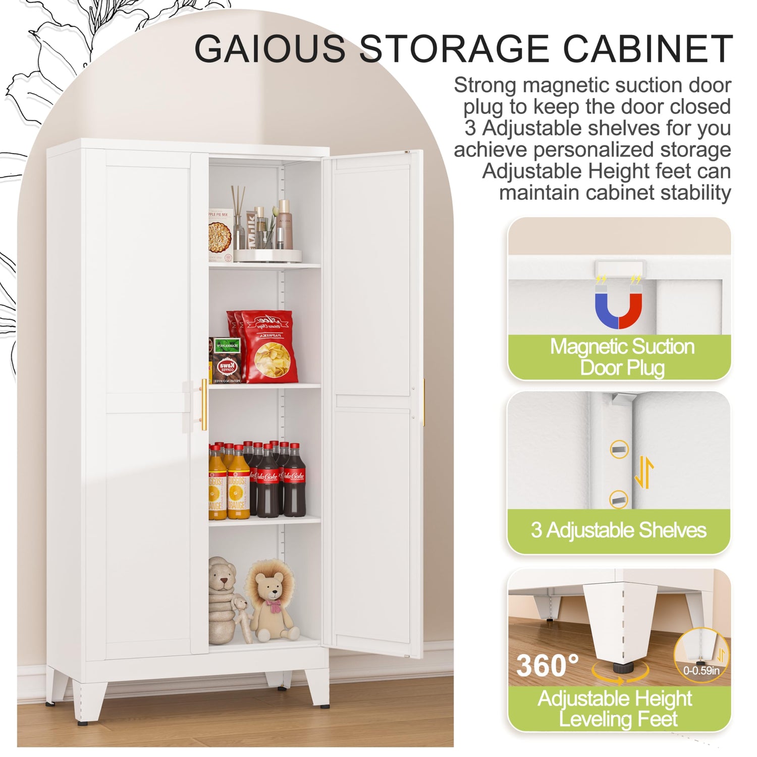 GAIOUS Metal Pantry Cabinet, Kitchen Pantry Storage Cabinets with 2 Door and 3 Adjustable Shelves, White Kitchen Pantry Cabinet, Freestanding Cupboard for Kitchen Dining Room Living Room Bathroom