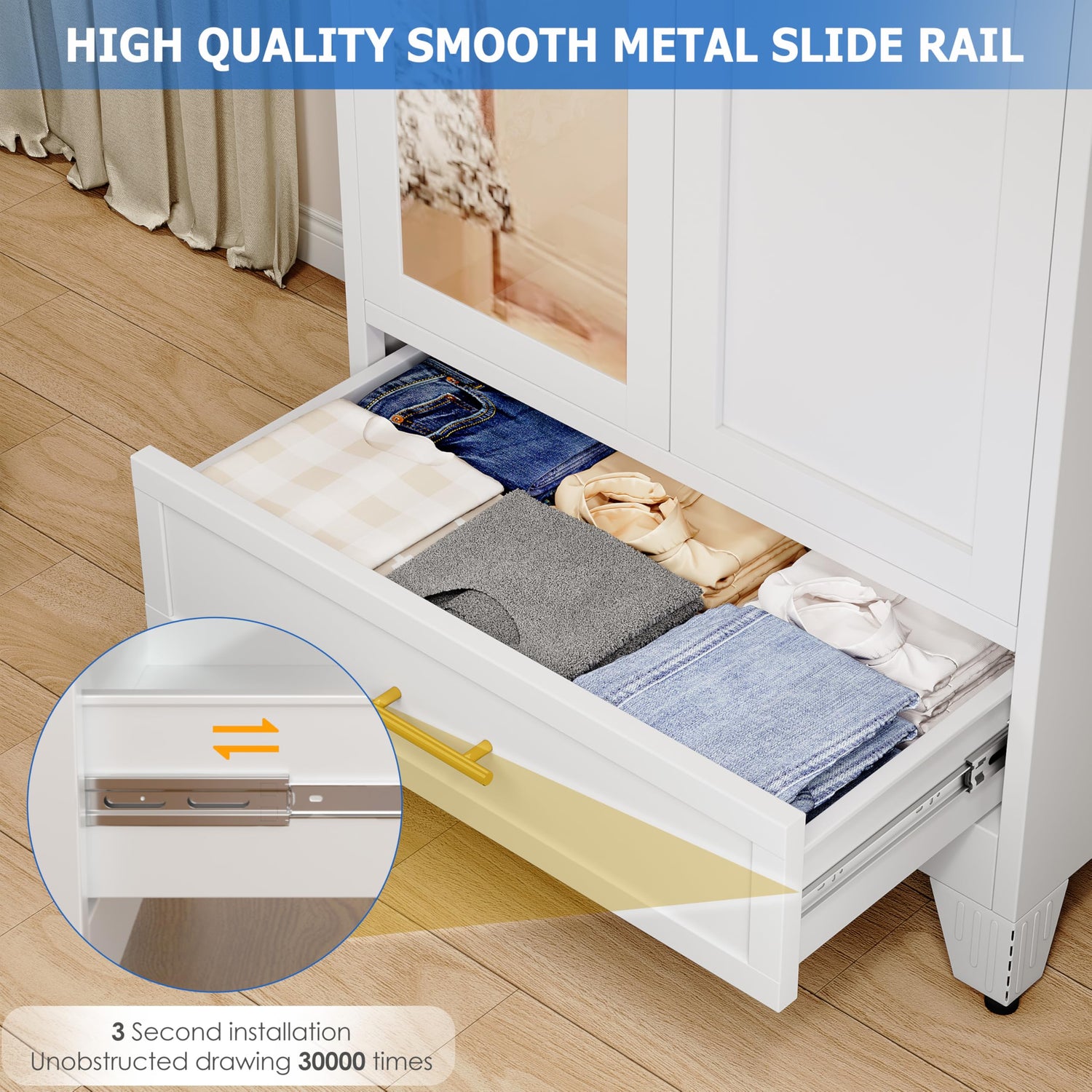 - 『♕Diversified Storage』The wardrobe storage cabinet includes 1 adjustable height shelves, which are perfect for storing clothes such as dresses, suits, pants, etc. It is a great bedroom wardrobe choice. The adjustable shelf is convenient for storing large items such as storage boxes, kitchen appliances, etc. You can also use it to store small items such as bathroom supplies, books, files, etc. The clothes hanging rod can hang clothes of the same length as skirts. Drawers can store small items or personal belongings