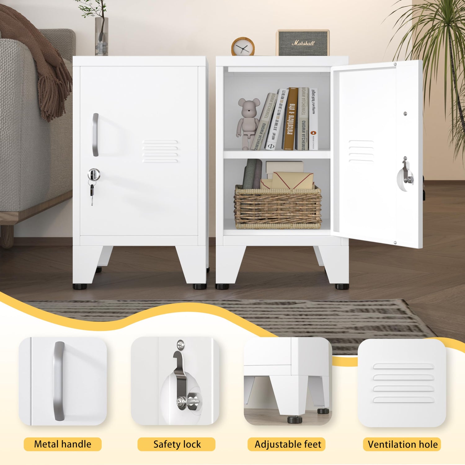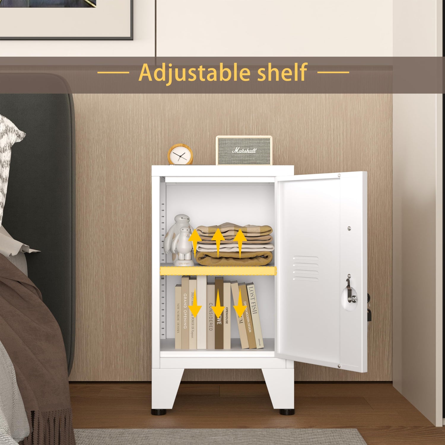 GAIOUS White Nightstand, Single Door Pantry Cabinet with Adjustable Shelf and Feet can be Used as Side Table, Stackable Small Storage Cabinet for Bedroom, Living Room, Office and Gym