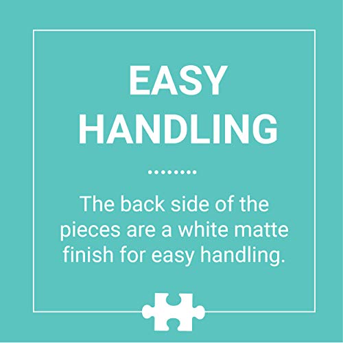 - EASY HANDLING – The 1000 puzzle pieces are thick and sturdy, and the back sides are a white matte finish. The completed puzzle measures 27” x 20" and the box measures 8.25” x 11.25” x 2".