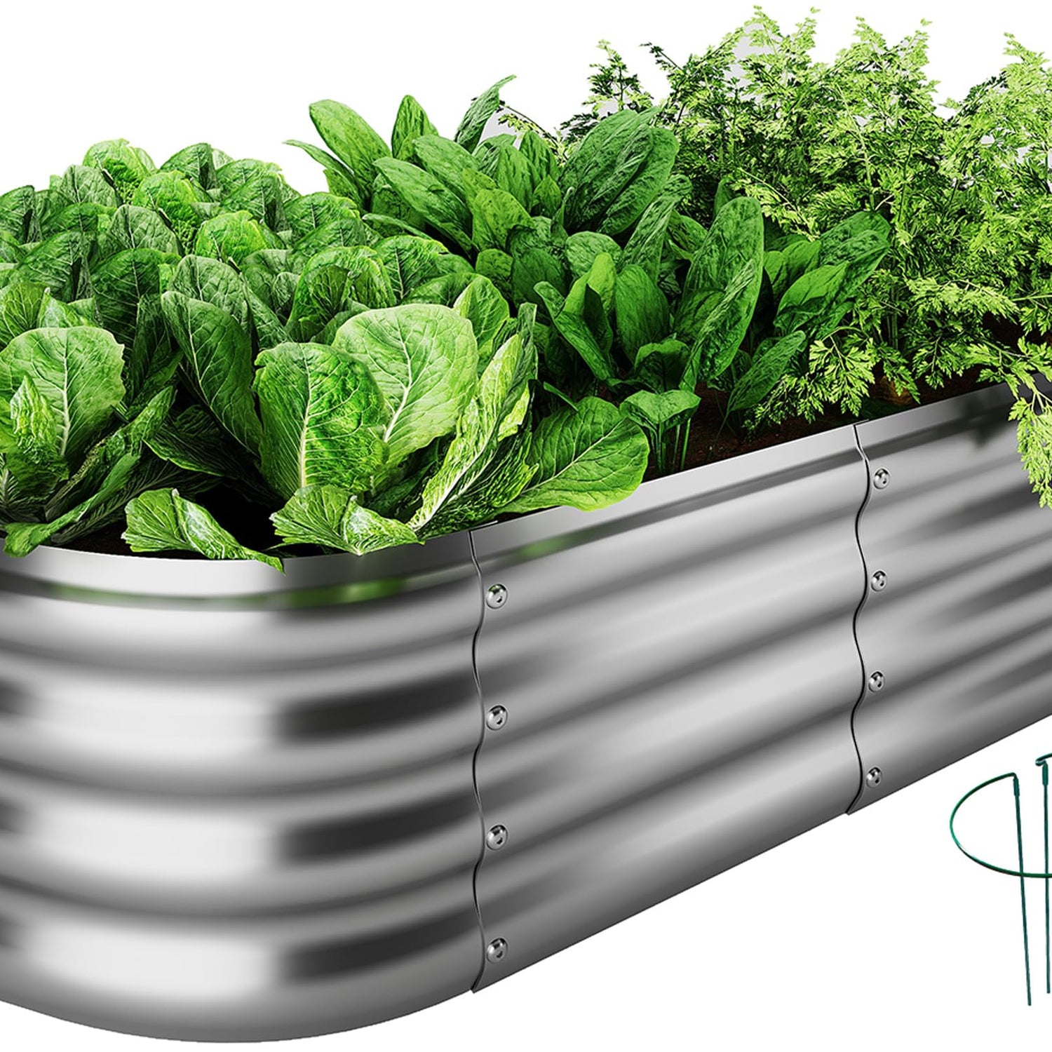 - Outdoor galvanized planter boxes size: 4×2×1 ft, Can hold garden soil and fertilizers: 7.14 Cubic feet. Available in a variety of colors, you can choose the one that best suits your garden style. Moreover, you can use galvanized sheets to splice out the size and shape you want. Use your design skills and imagination, and combine this galvanized garden beds outdoor with metal plant stakes to DIY your beautiful garden