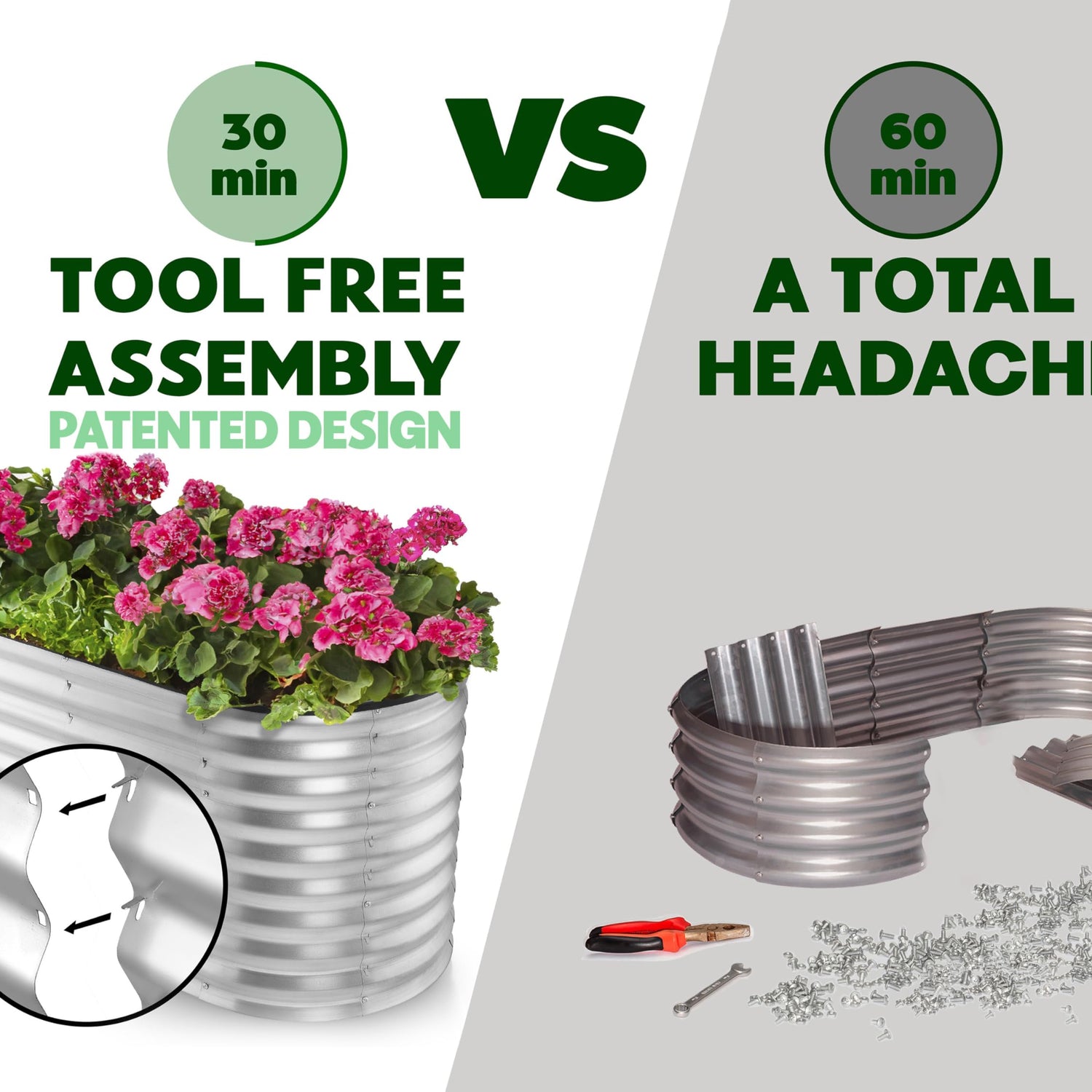 - EFFORTLESS ASSEMBLY, LIKE NO OTHER! Begin your planting journey by choosing our innovative patented design, featuring the perfect combination of easy assembly and durability. Thanks to our unique tool-free design, assembly is a breeze and can be completed in just 30 minutes! Get started on your garden right away and enjoy fresh, healthy produce in no time.