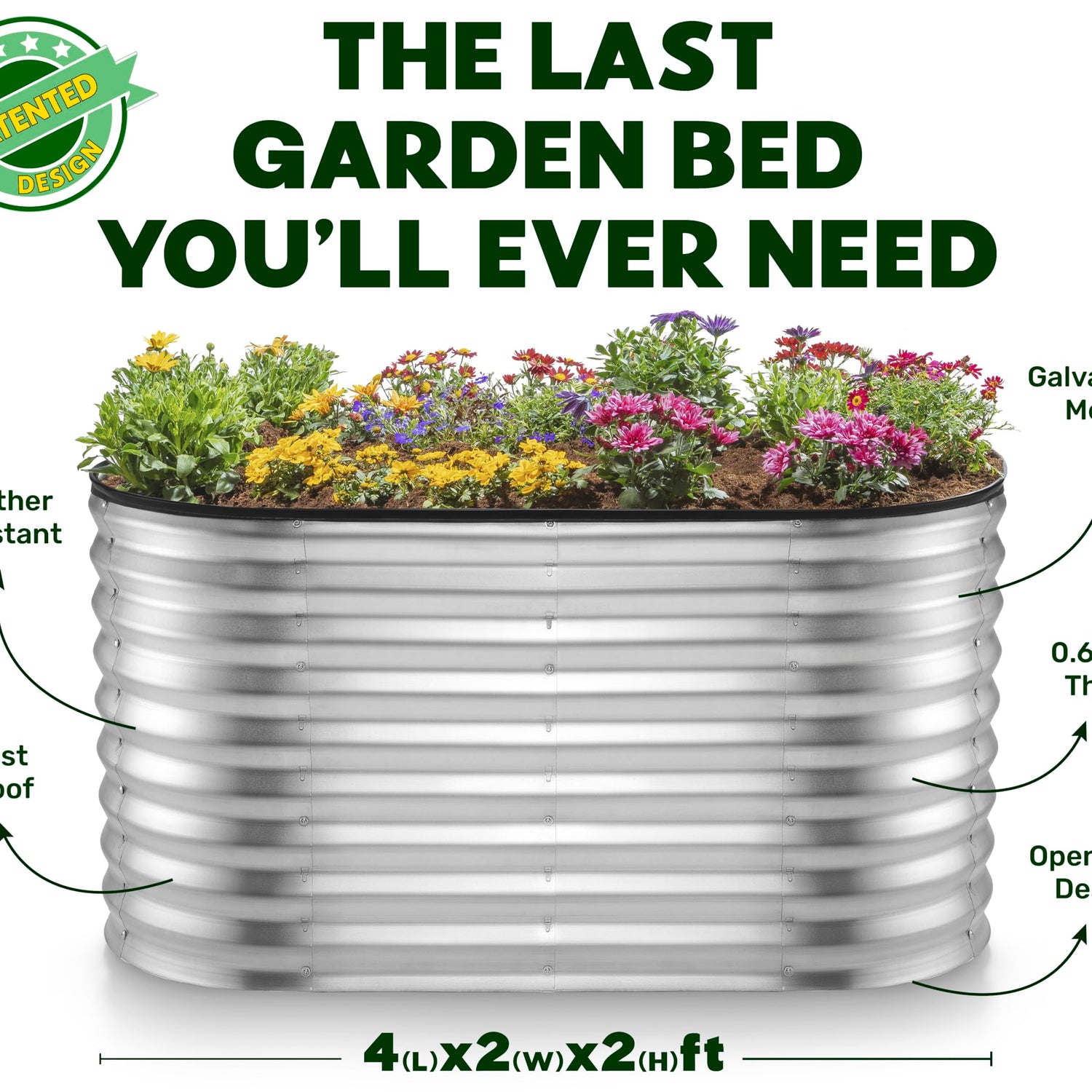 Galvanized Raised Garden Beds Outdoor // 4×2×2 ft Planter Raised Beds for Gardening, Vegetables, Flowers // Large Metal Garden Box (Silver) // Patented Tool-Free Design