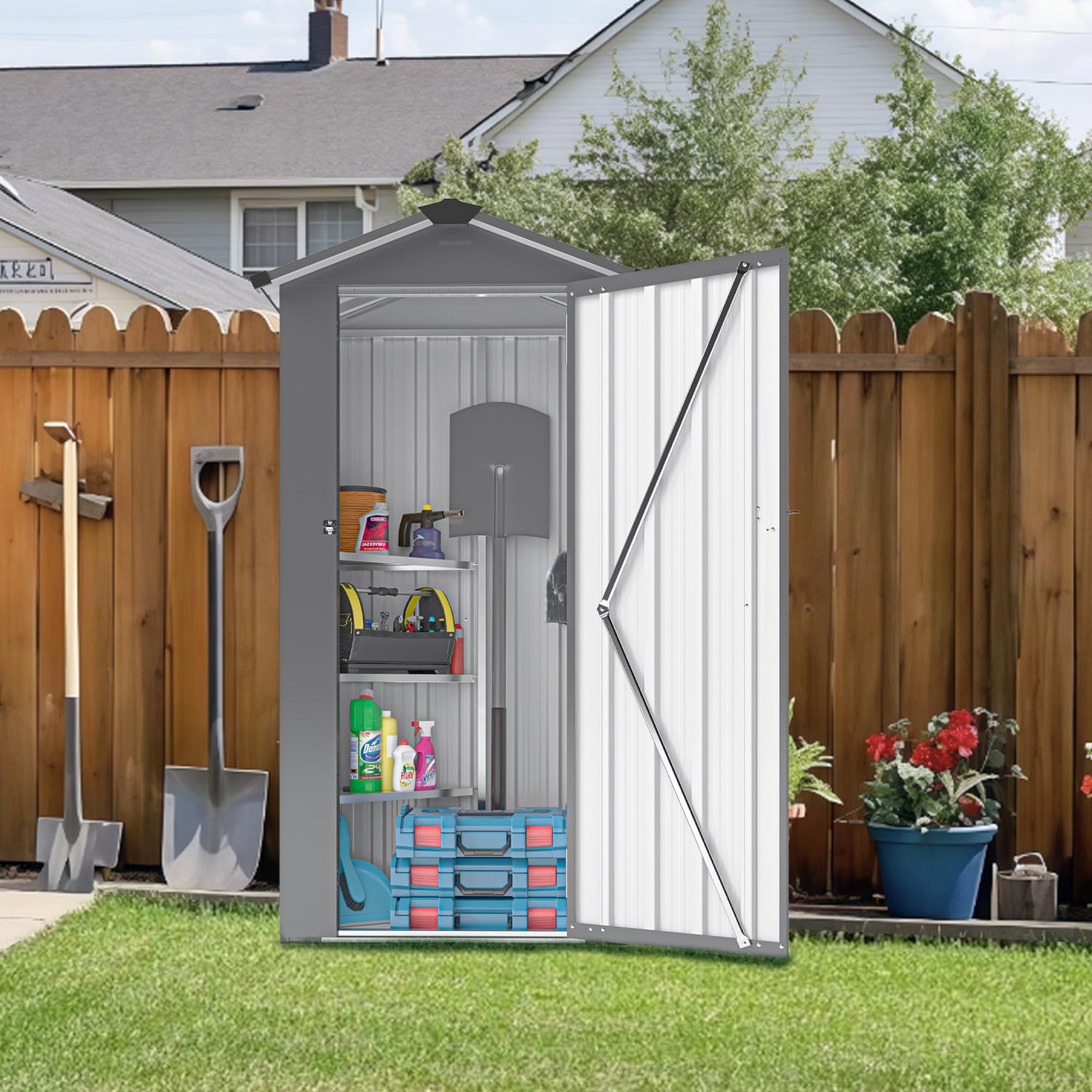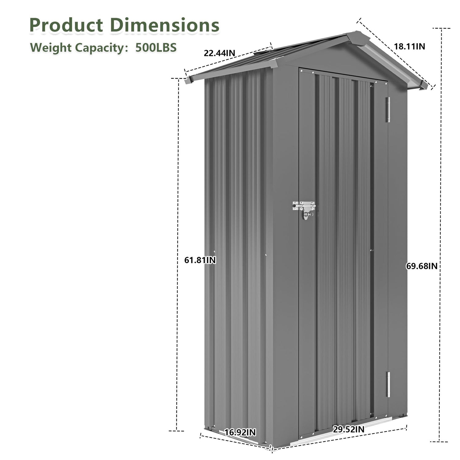 Galvanized Steel Outdoor Storage Shed - Waterproof Metal Utility Cabinet with Lock, 65" Large Capacity for Garden Tools & Equipment, Easy Assembly (Black)