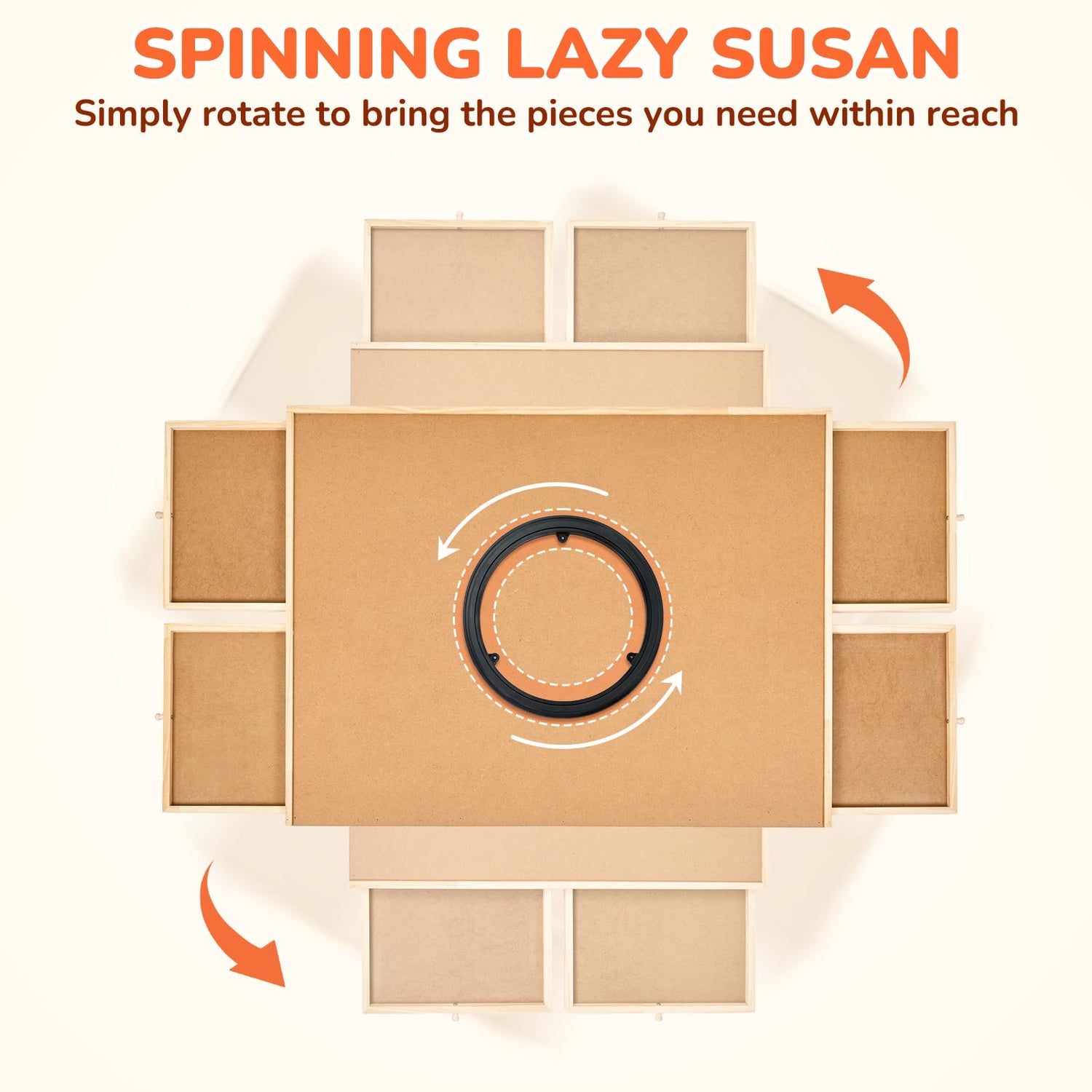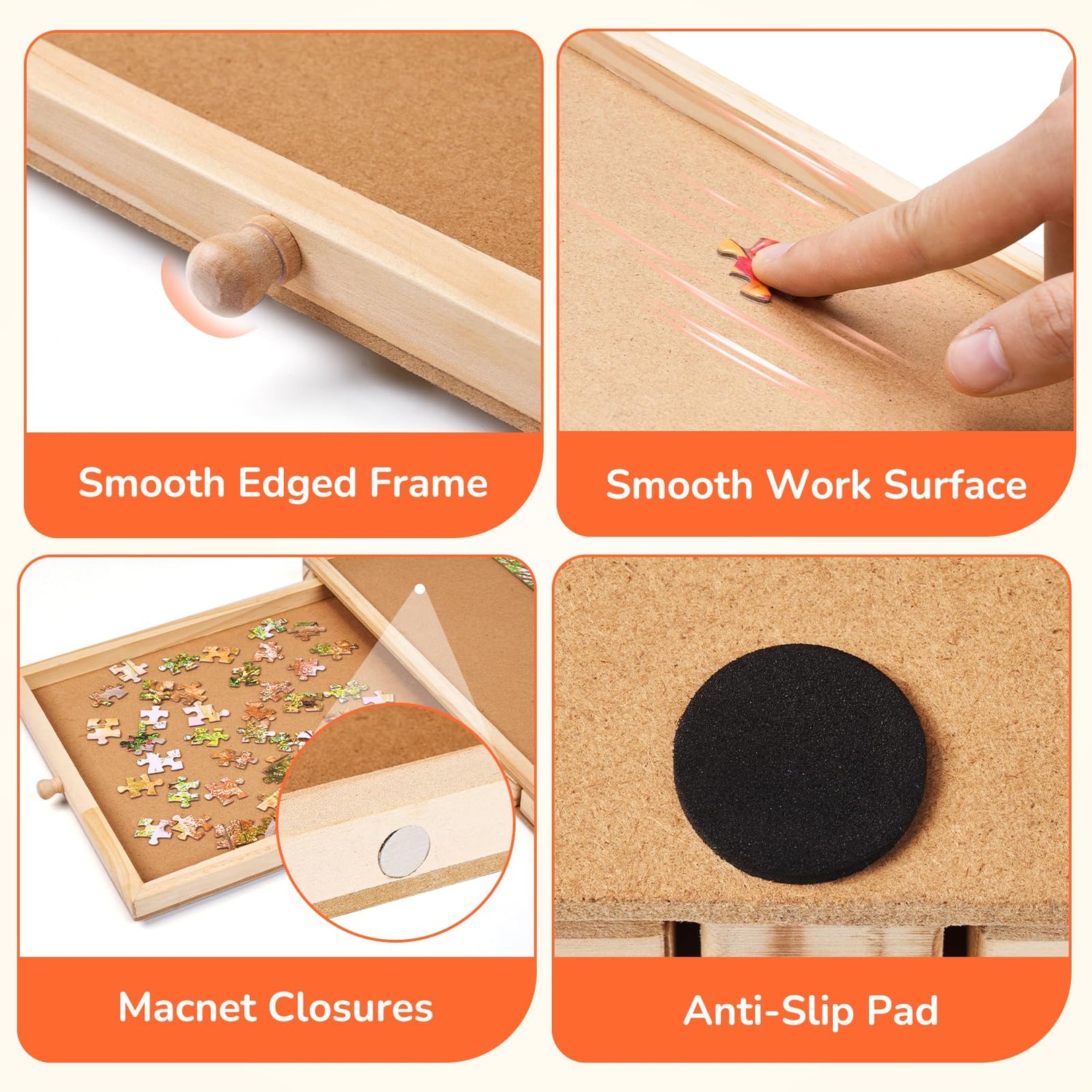 Gamenote 1500 Pieces Rotating Jigsaw Puzzle Table with Cover, Portable Large Puzzle Board with Drawer, Wooden Smooth Plateau Work Surface for Kids Family Game
