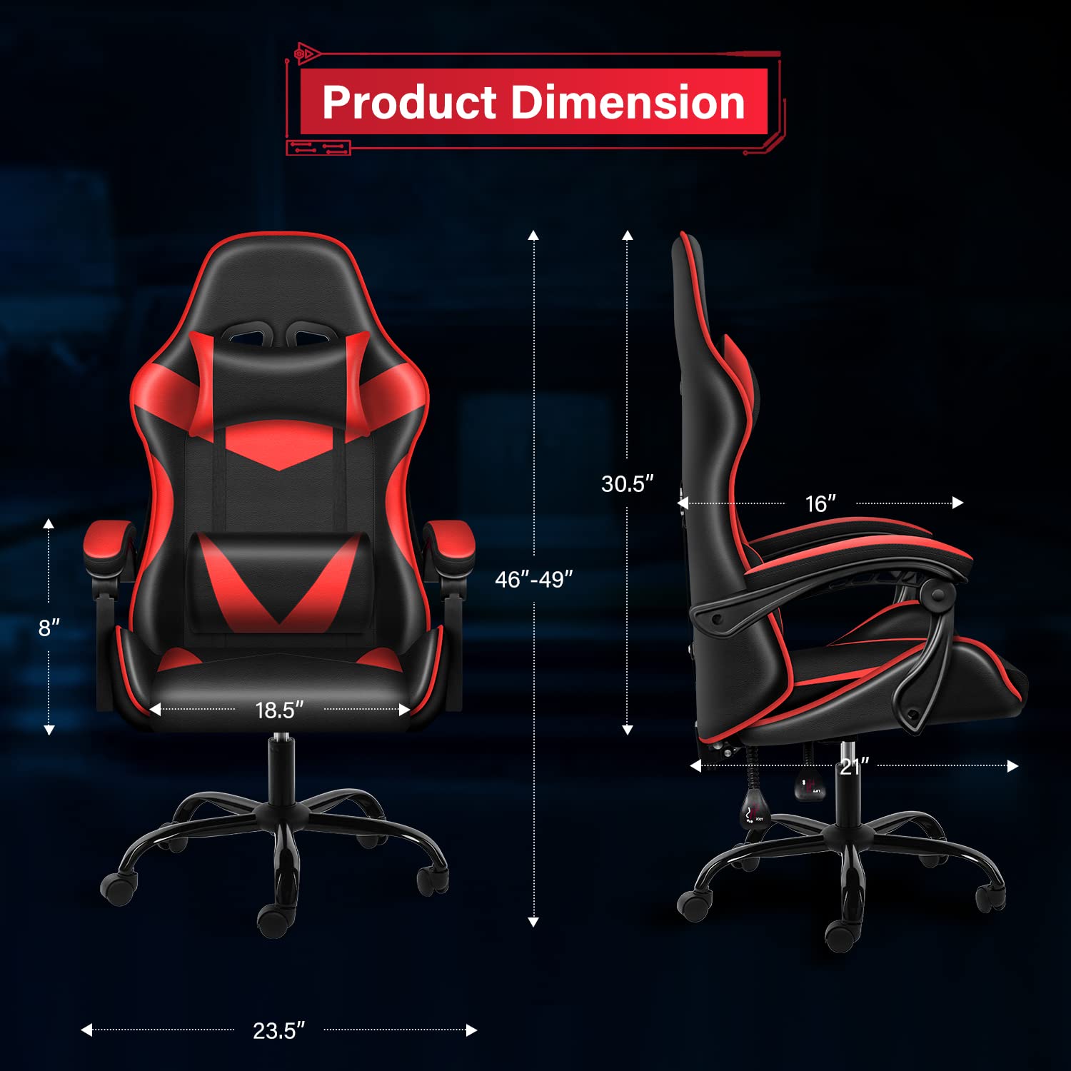 - [Comfort Design] Ergonomic design helps you maintain a neutral, balanced posture and reduce your pressure and pain. Well-padded seat, lumbar & headrest cushions make extended gaming sessions more enjoyable.