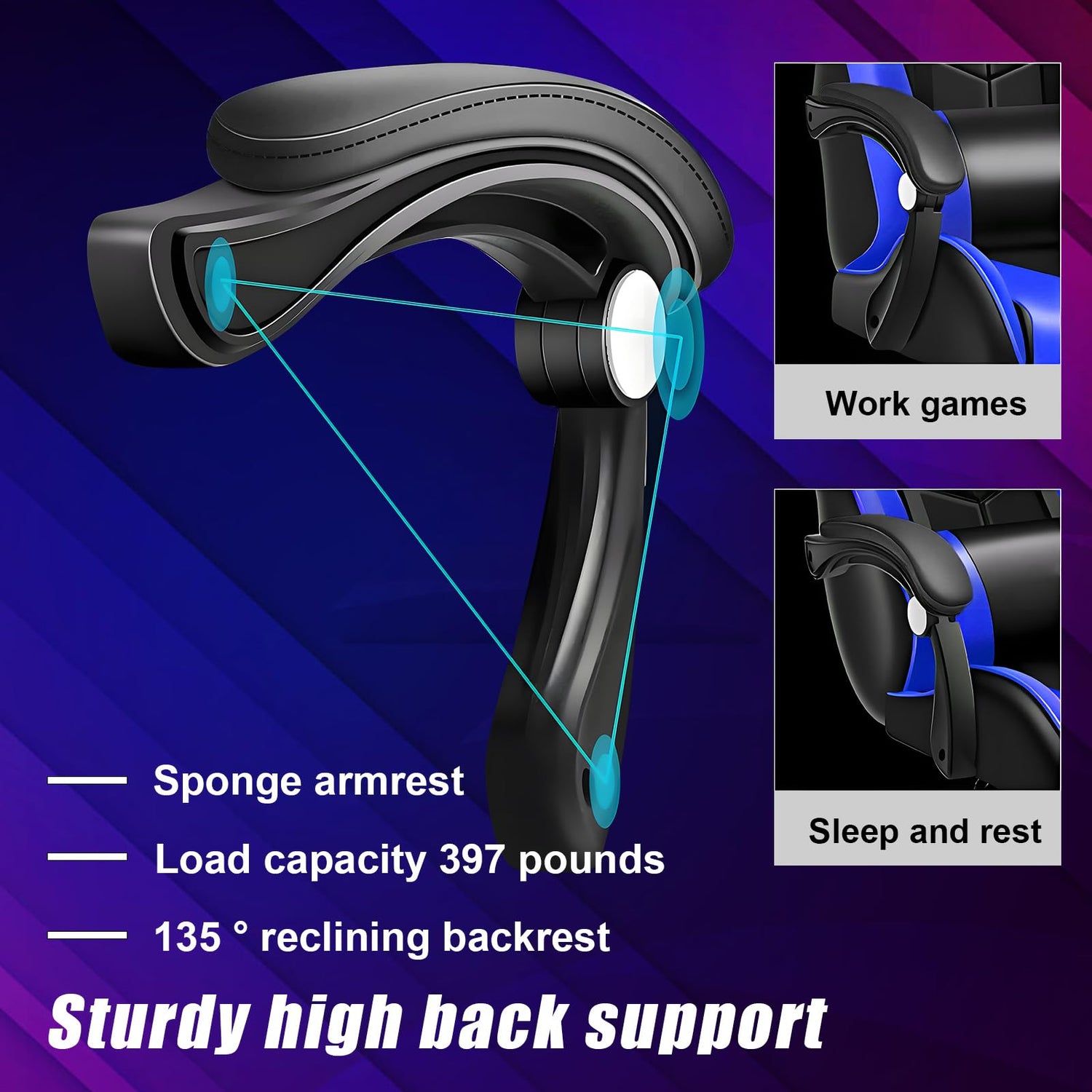 Gaming Chair with Compatible Speakers and RGB LED Lights, Ergonomic Massage Computer Gaming Chair with Height Adjustable, Video Game Chair High Back with Lumbar Support (Black Blue)