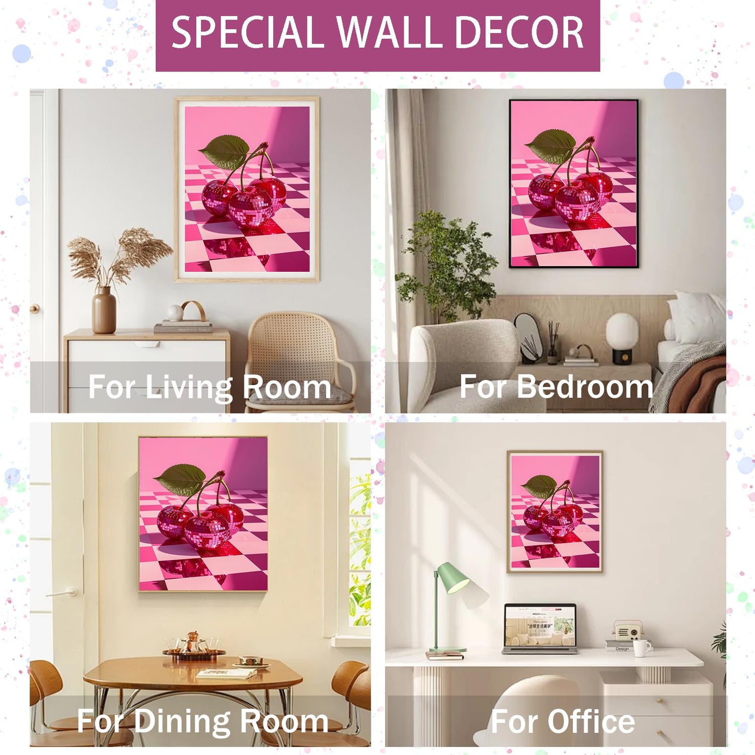 Gamteldot Diamond Art Kits for Adults,Cherry Diamond Painting Kits,5D Diamond Art DIY Full Drill Diamond Dots Gem Art Craft with Full Tools,for Home Wall Decor Gift-12x16in