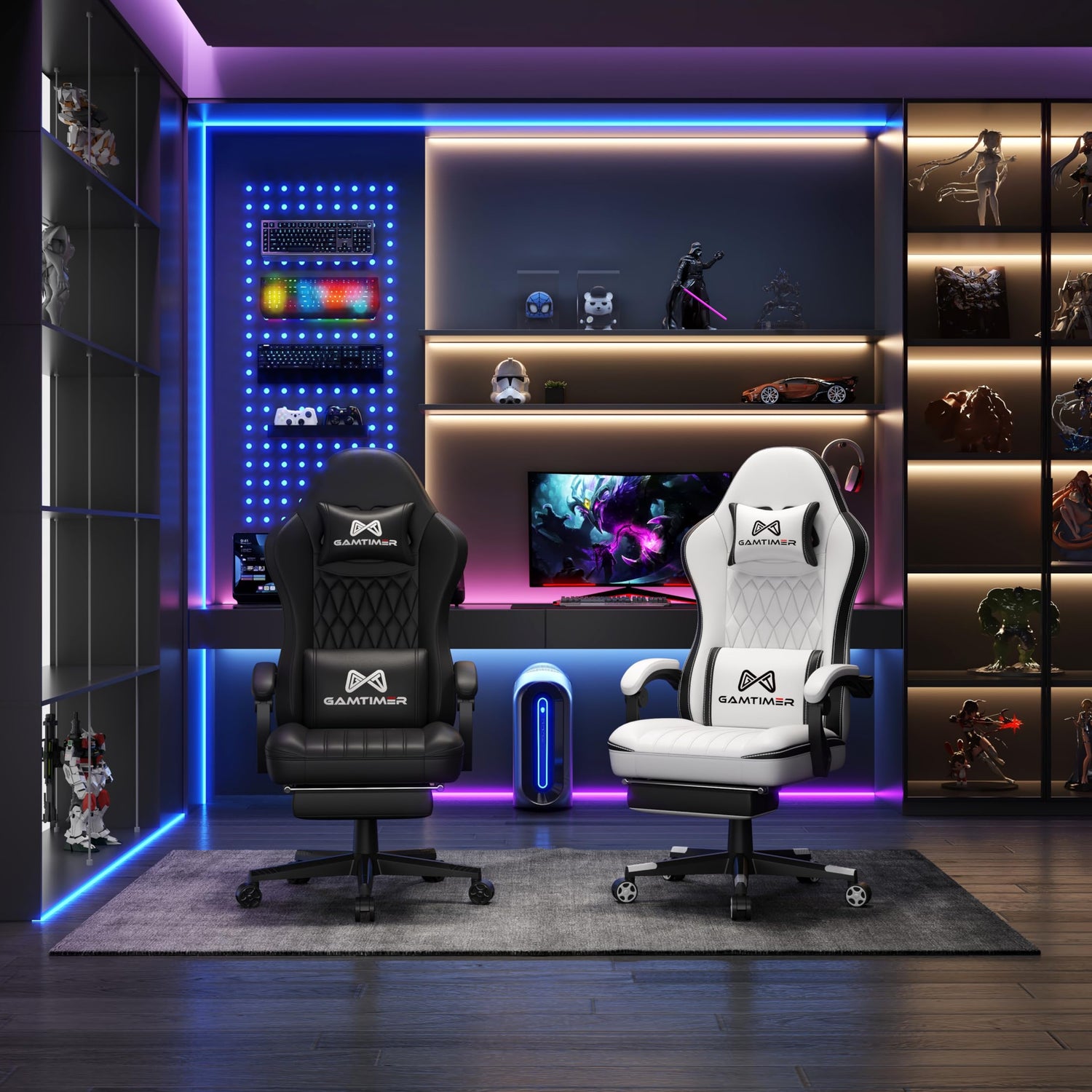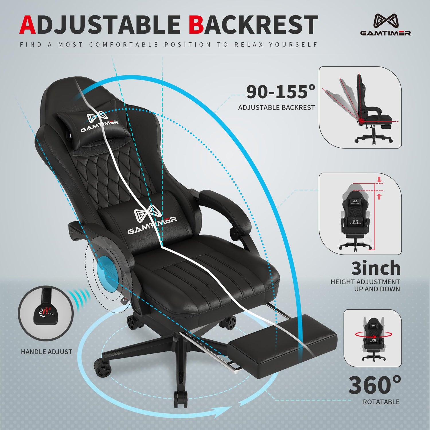 Gamtimer Gaming Chair, Computer Office Chair with Footrest, 155Β° Reclining Chair, Ergonomic High Back Computer Chair with Headrest and Lumbar Support for Adults and KidsοΌDark BlackοΌ