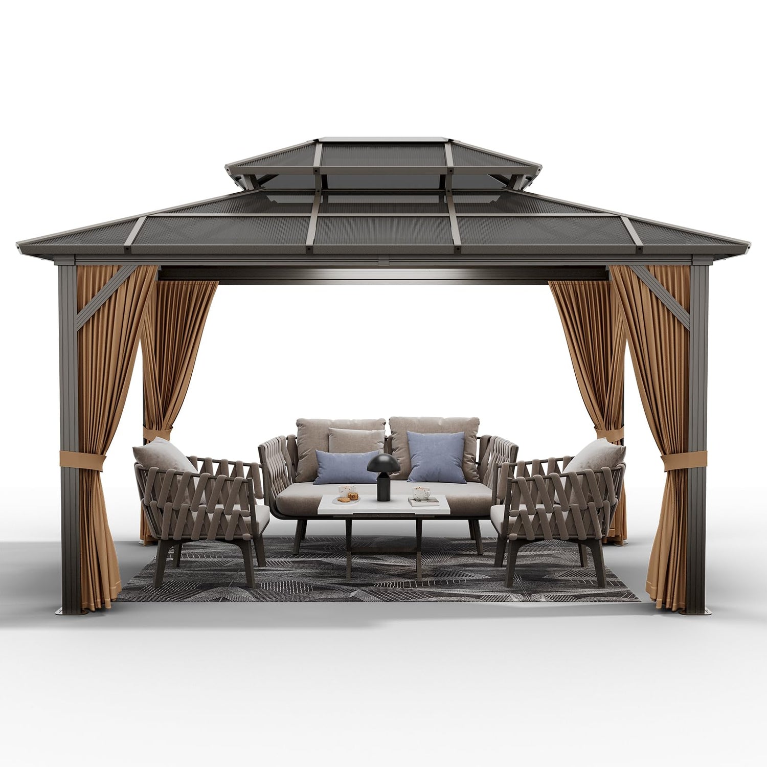 GAOMON 10'x12' Hardtop Gazebo, Outdoor Polycarbonate Double Roof Canopy, Aluminum Frame Permanent Pavilion with Curtains and Netting, Sunshade for Garden, Patio, Lawns (10x12ft)