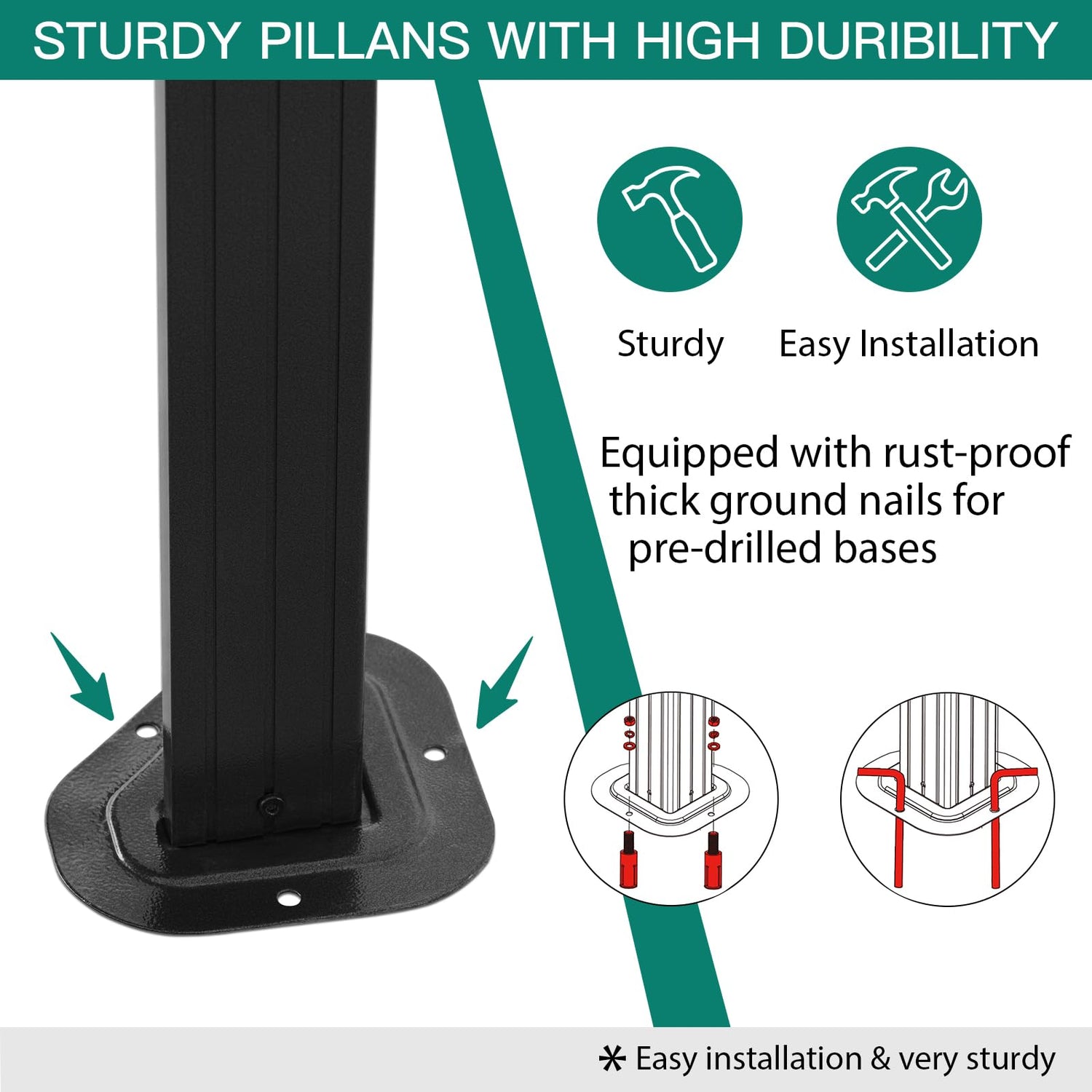 - STURDY ALUMINUM PAVILLION: Our 10 x13ft gazebo made of Strong powder coated aluminum frame is weather-resistant and prevents fade, rust, and corrosion; the feet contain holes and ground stakes for additional stability.