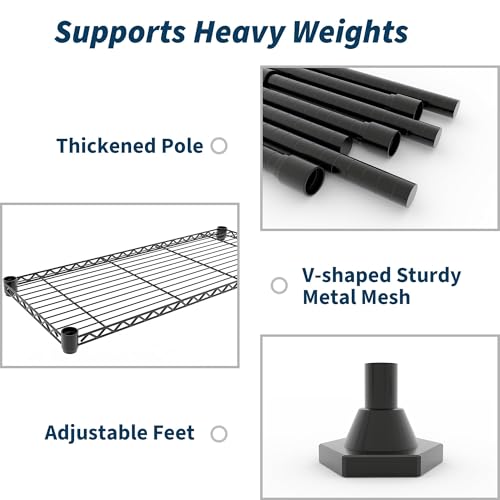 - 1060LBS Heavy Duty Shelving: Constructed with 19.1 mm diameter thickened metal poles and reinforced V-shaped wire shelves for extra strength, this heavy duty metal shelf can effortlessly hold up to 265 lbs per shelf, total 1060 LBS, providing reliable strong shelving for garage storage racks, pantry shelves, and tool organization.