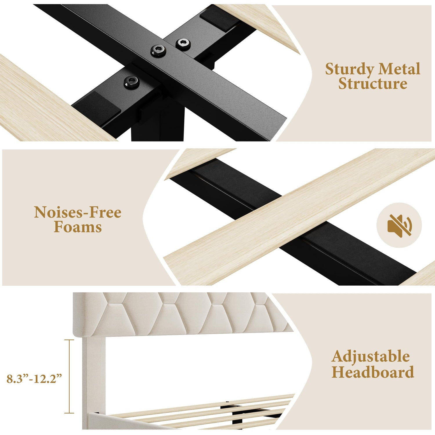 - 【Modern Elegance】: Featuring a diamond block design on the headboard, the upholstered bed frame combines contemporary style with plush comfort. And wide headboard not only adds comfort but also completes your contemporary aesthetic. Its foam-padded upholstery offers supportive comfort while relaxing