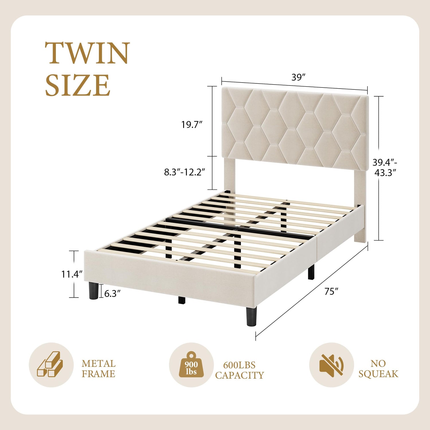 Details: GAOMON Beige Twin Upholstered Bed Frame,Bed Frame with Upholstered Headboard, Heavy-Duty Platform Bed Frame with Strong Wood Slats, No Box Spring Needed/Noise Free/Easy Assembly