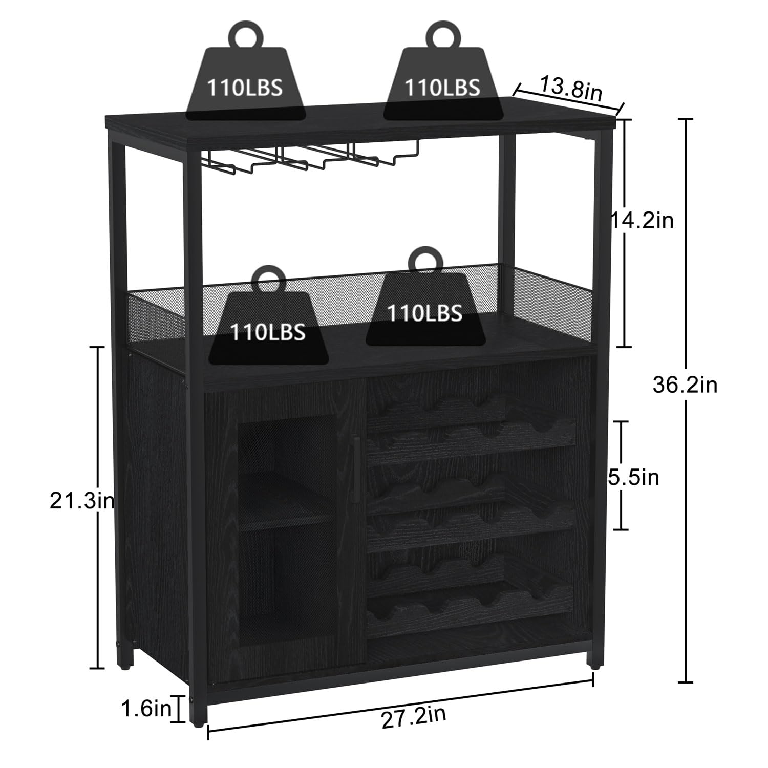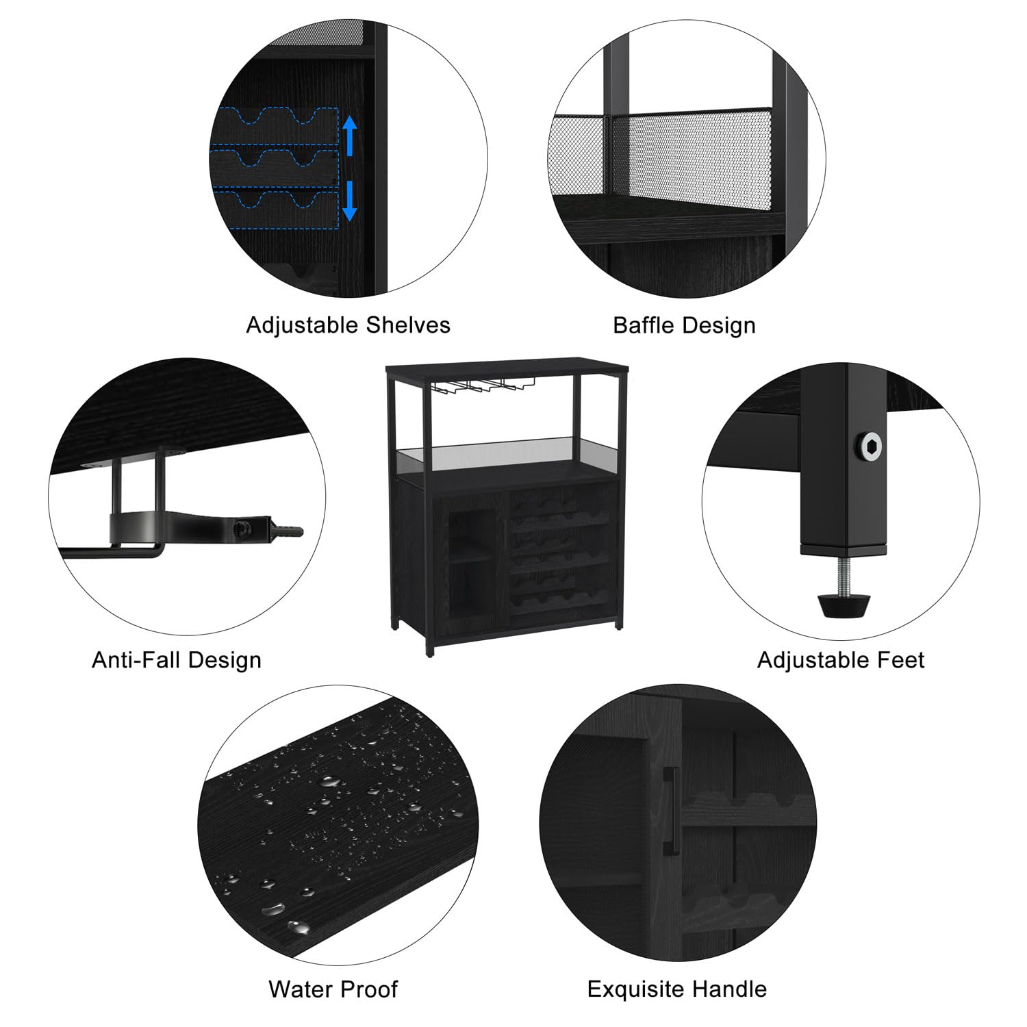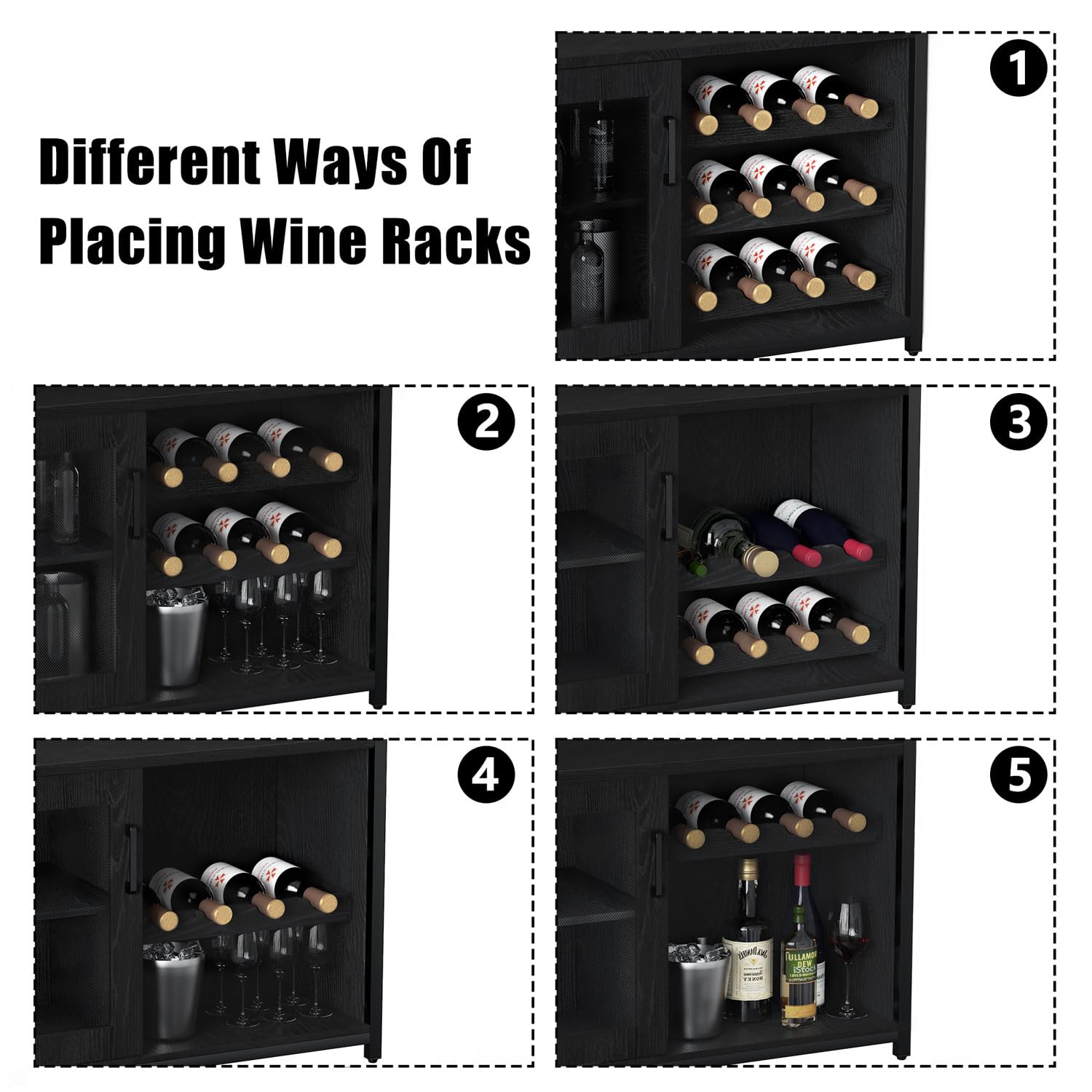 Details: Coffee Wine Bar Cabinet with Storage and Detachable Rack, Farmhouse Sideboard and Buffet Cabinet with Glass Holder and Mesh Door, Liquor Coffee Bar Cupboard, Black