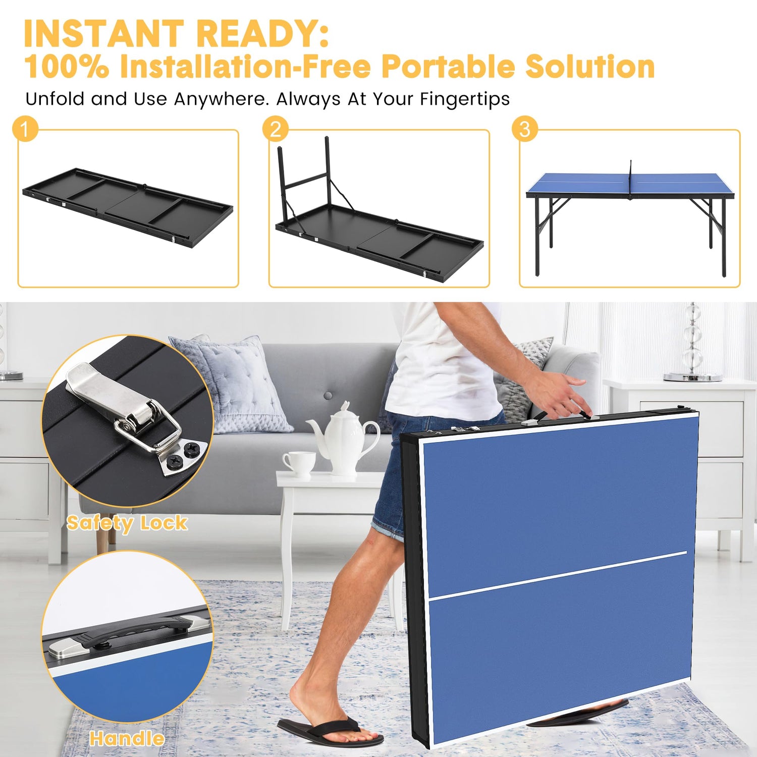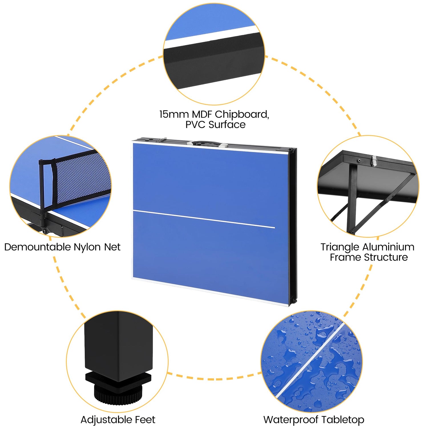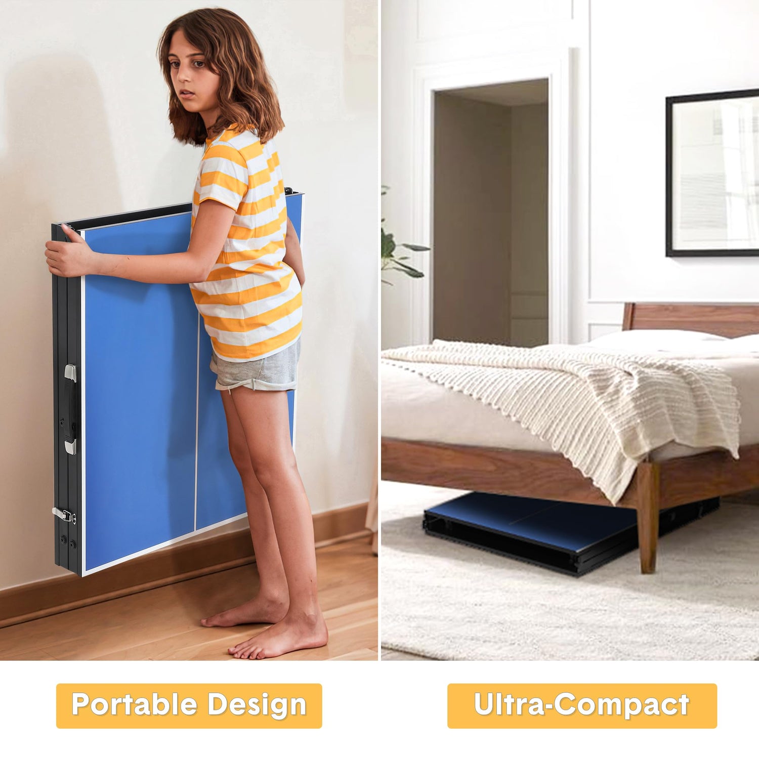 GAOMON Foldable and Portable Table Tennis Table, Indoor and Outdoor Ping Pong Table, Table Tennis Table with 2 Table Tennis Paddles and 3 Balls, 5 Minute Assembly, 60 x 26 x 27.5 Inch