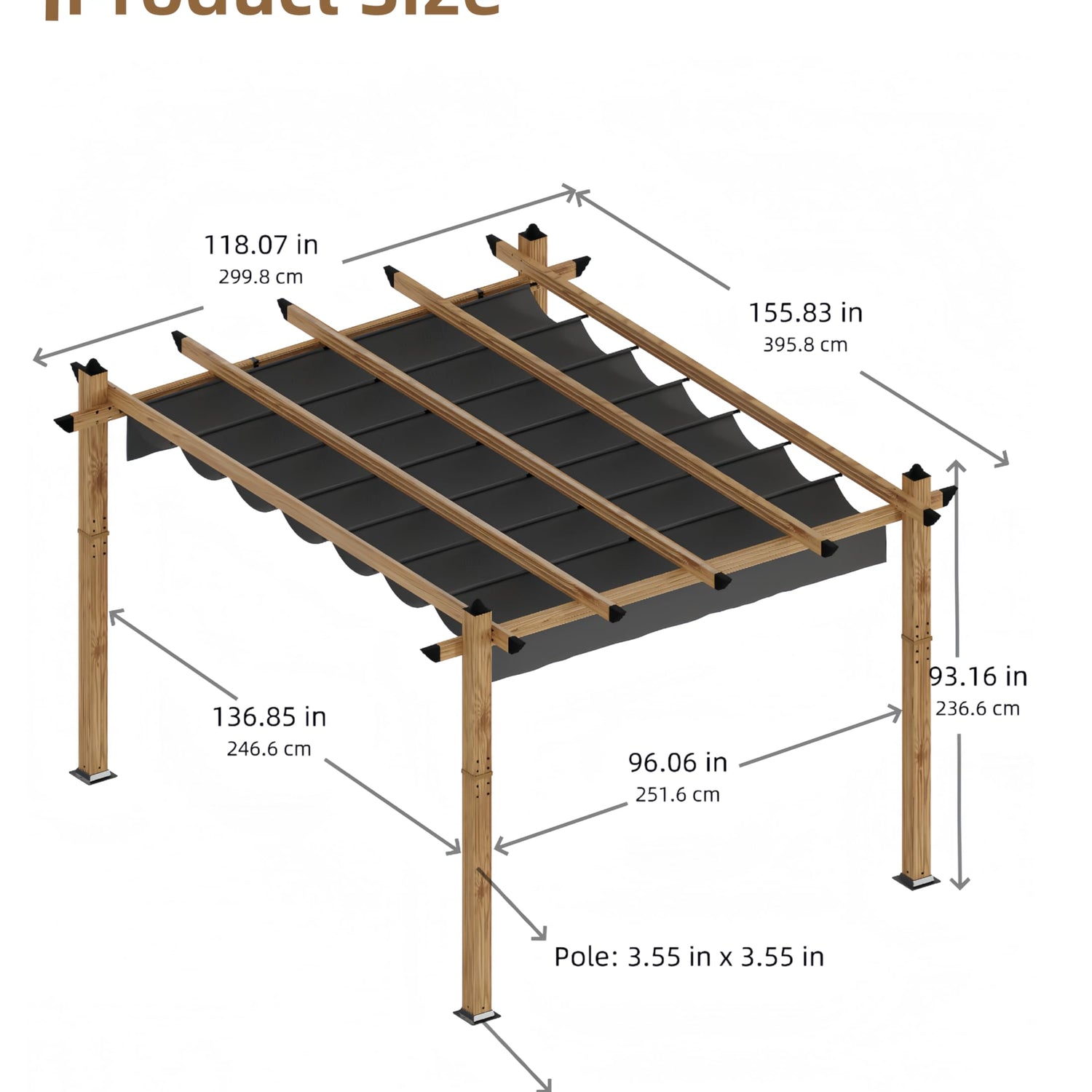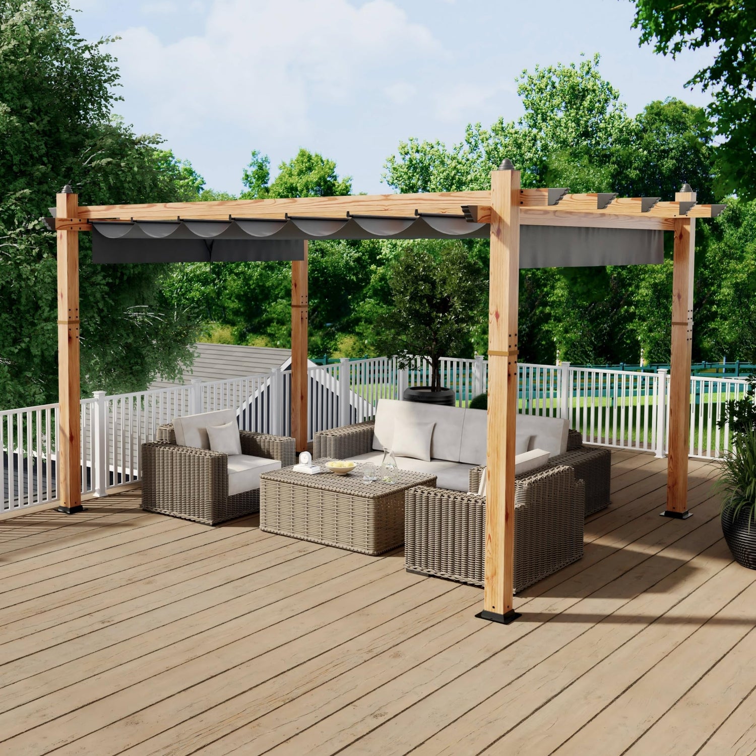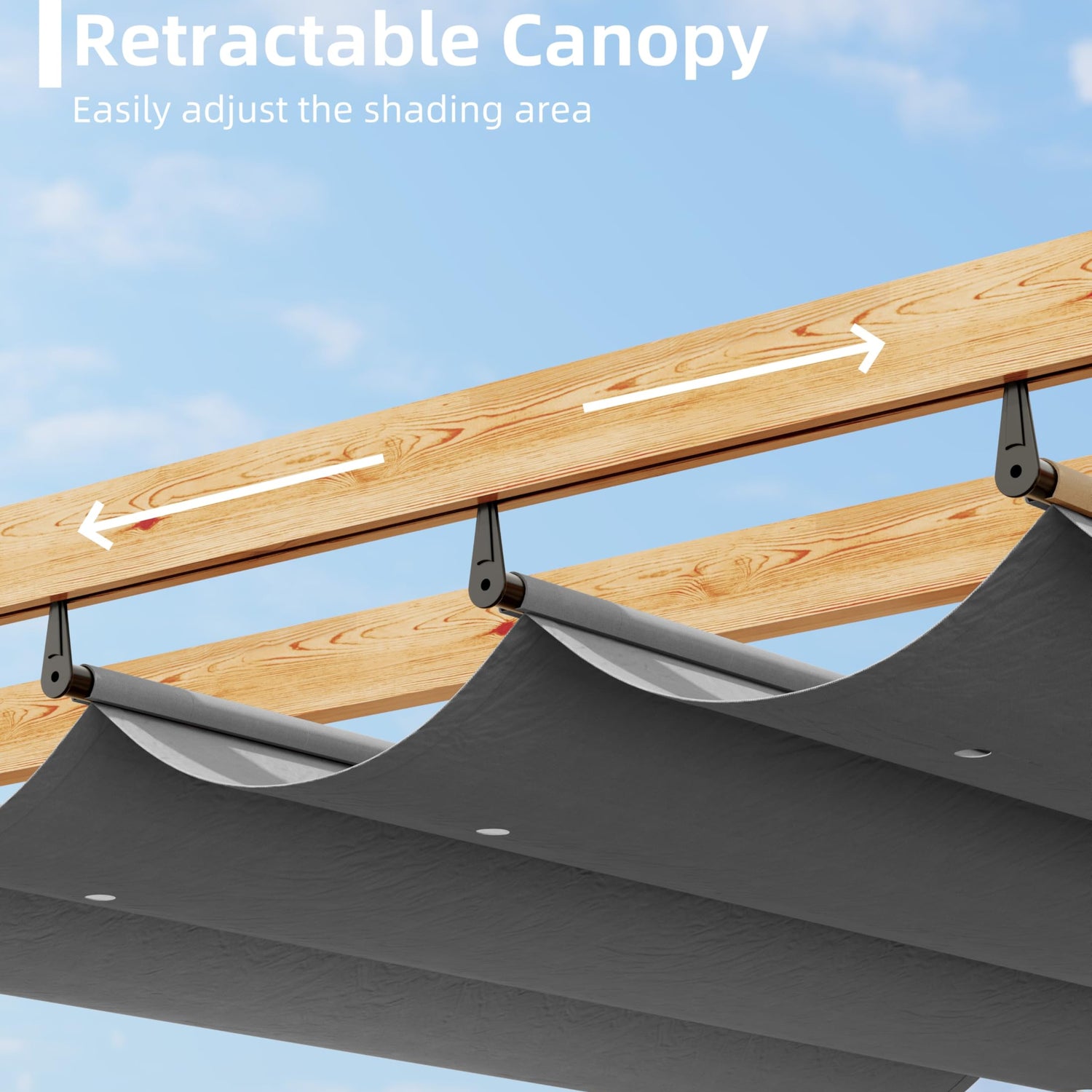 GAOMON Retractable Pergola 10' x 13' Aluminum Outdoor Pergola with Retractable Canopy Faux Wood Metal Pergolas for Patios, Backyard, Deck, Patio, Garden Porch Beach Pavilion Grape Trellis, Gray