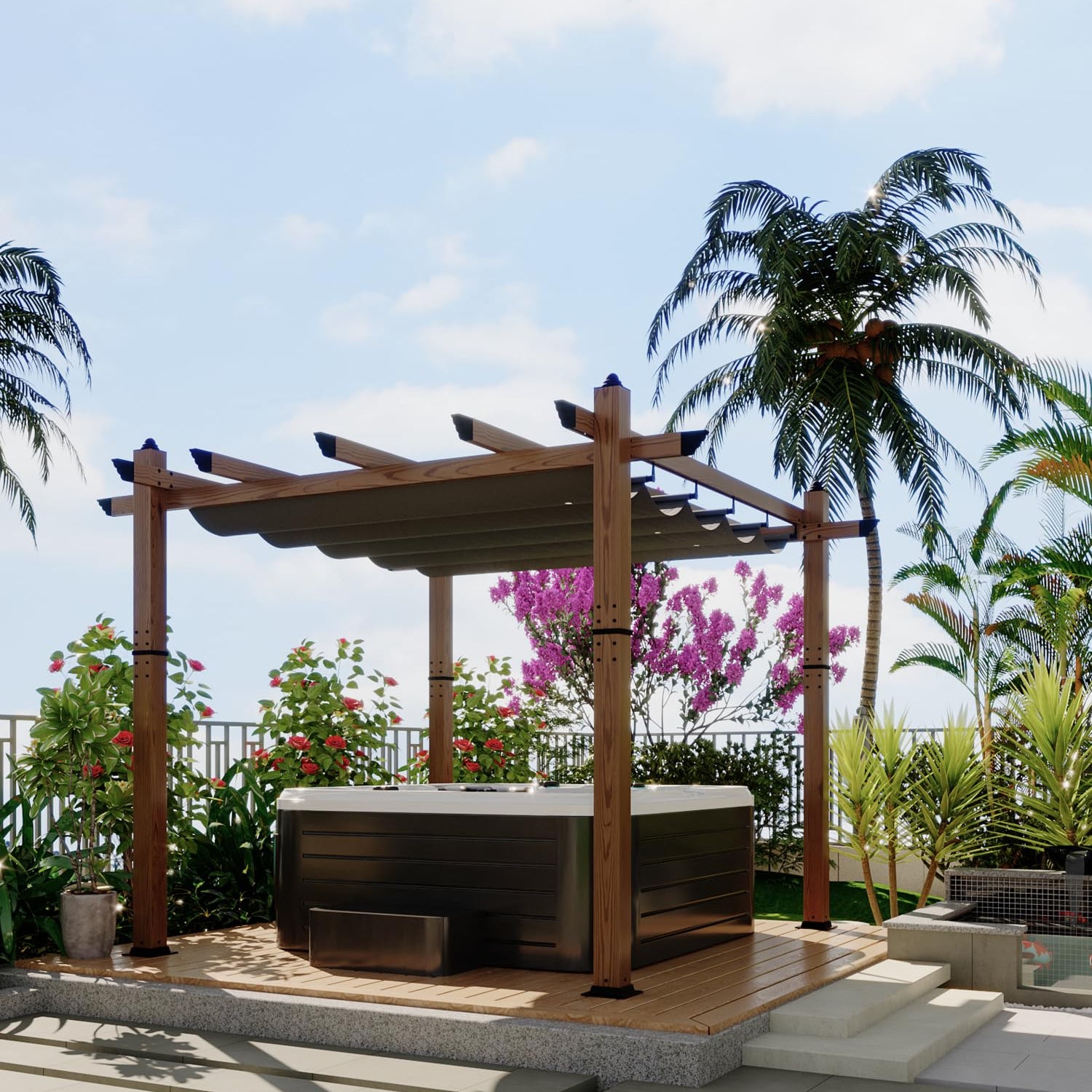 - Outdoor Pergola with Retractable Canopy: Features a retractable pergola system with sliding tracks and spring locks, allowing flexible shade adjustment. Balance natural light and sun protection effortlessly for a comfortable outdoor environment.