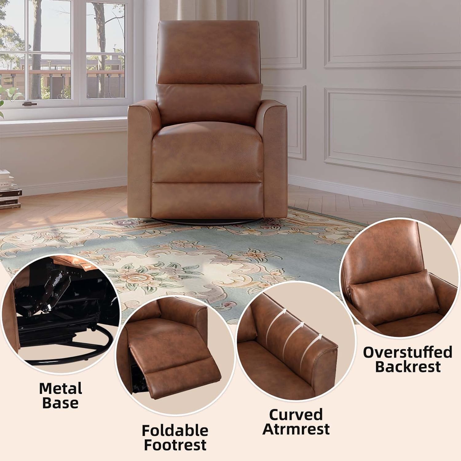 GAOMON Swivel Rocking Recliner Chair, Manual Leather Recliner Glider with Lumbar Support & Padded Armrest, Comfortable Rocker Nursery Single Sofa for Living Room and Bedroom (Brown)