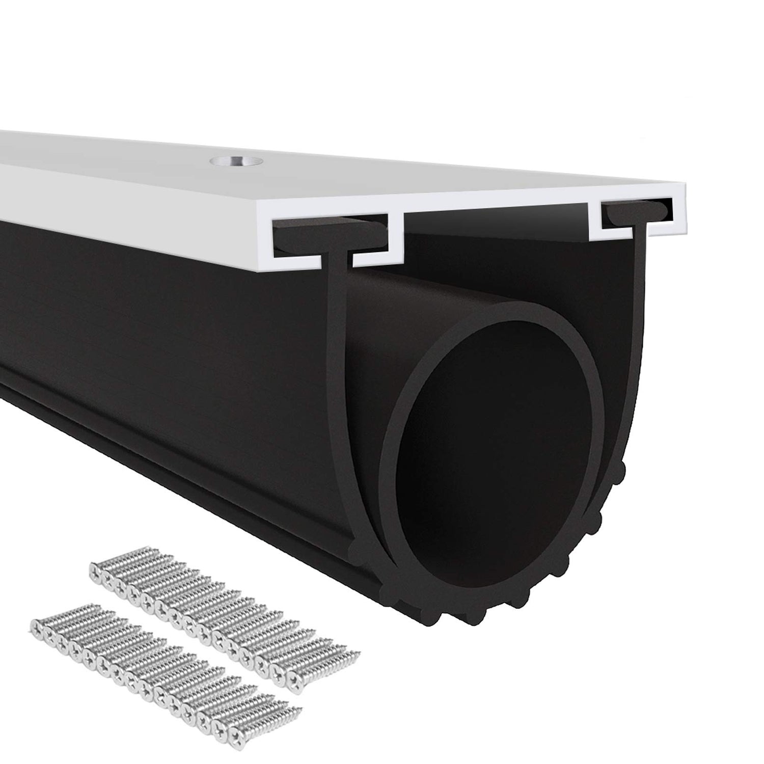 - Garage Door Weather stripping & Accessories: You can receive 3 x Aluminum T tracks( 39.4 inches each), 1x Garage Door Rubber seal(10 ft), Screw kit. You can easily fix the Aluminum T tracks the bottom of your garage door, and then install the T-end of the rubber garage door seal on the Aluminum T tracks