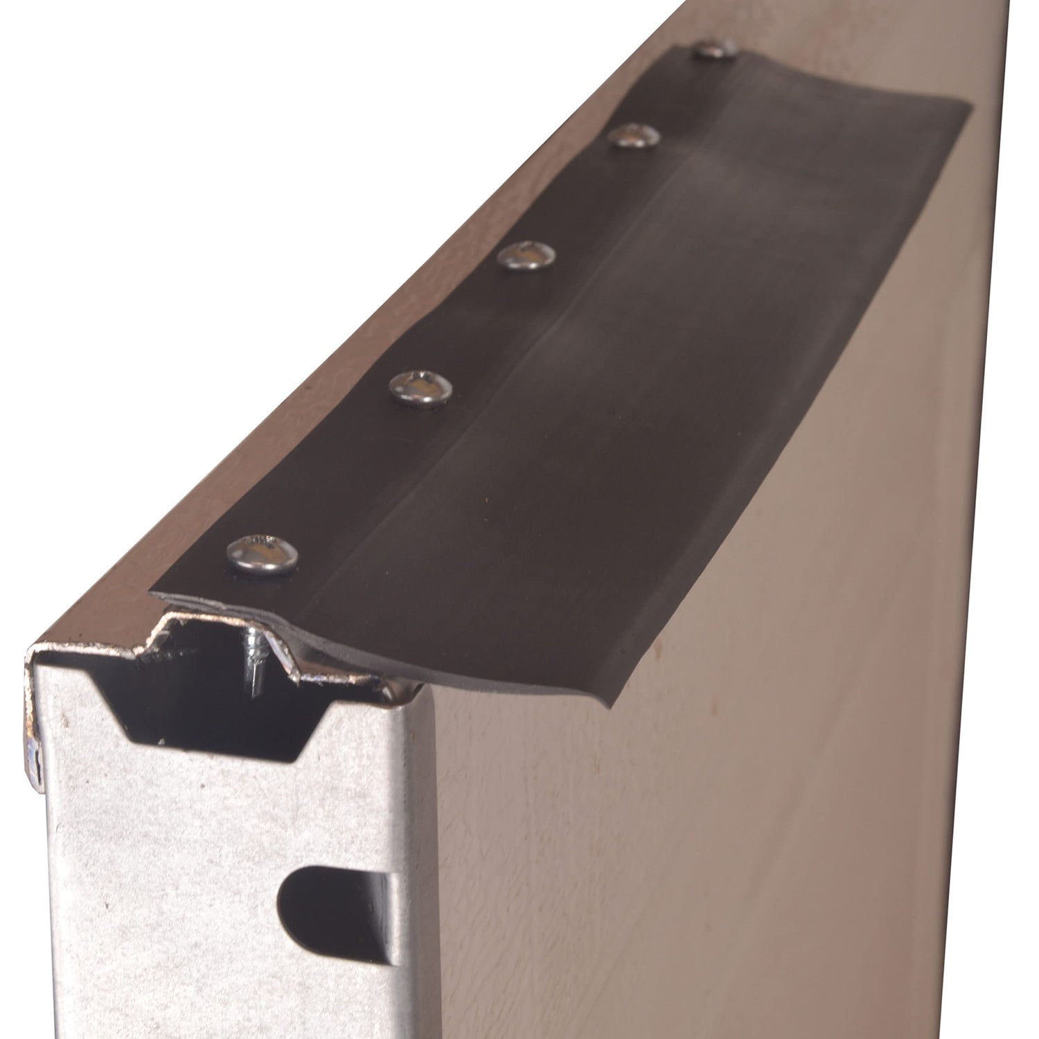 - Installed on the top of the door: The hard PVC portion of the seal is attached to the top of the door, as the door closes, the 1-3/4″ vinyl seal bends back making contact with the header of the structure. This results in a very good seal and is typically used in conjunction with side seals mounted on the outside.