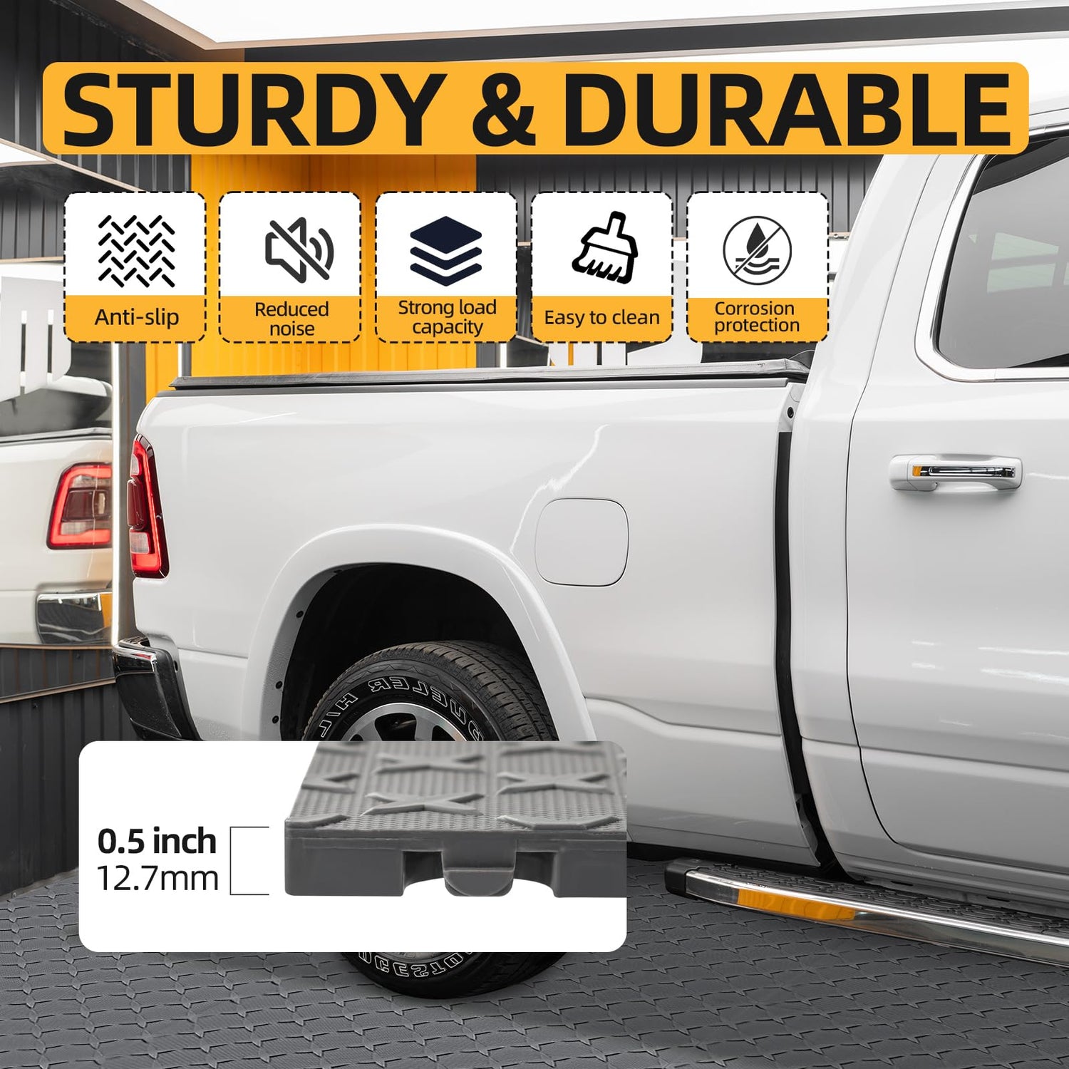 - HIGH QUALITY & DURABLE MATERIAL: Interlocking garage tiles are made of high quality PP material, which is strong, durable and impact resistant, and won't deform even after long time use. The bottom grid design helps to disperse pressure and can carry large tons of heavy items or machines.