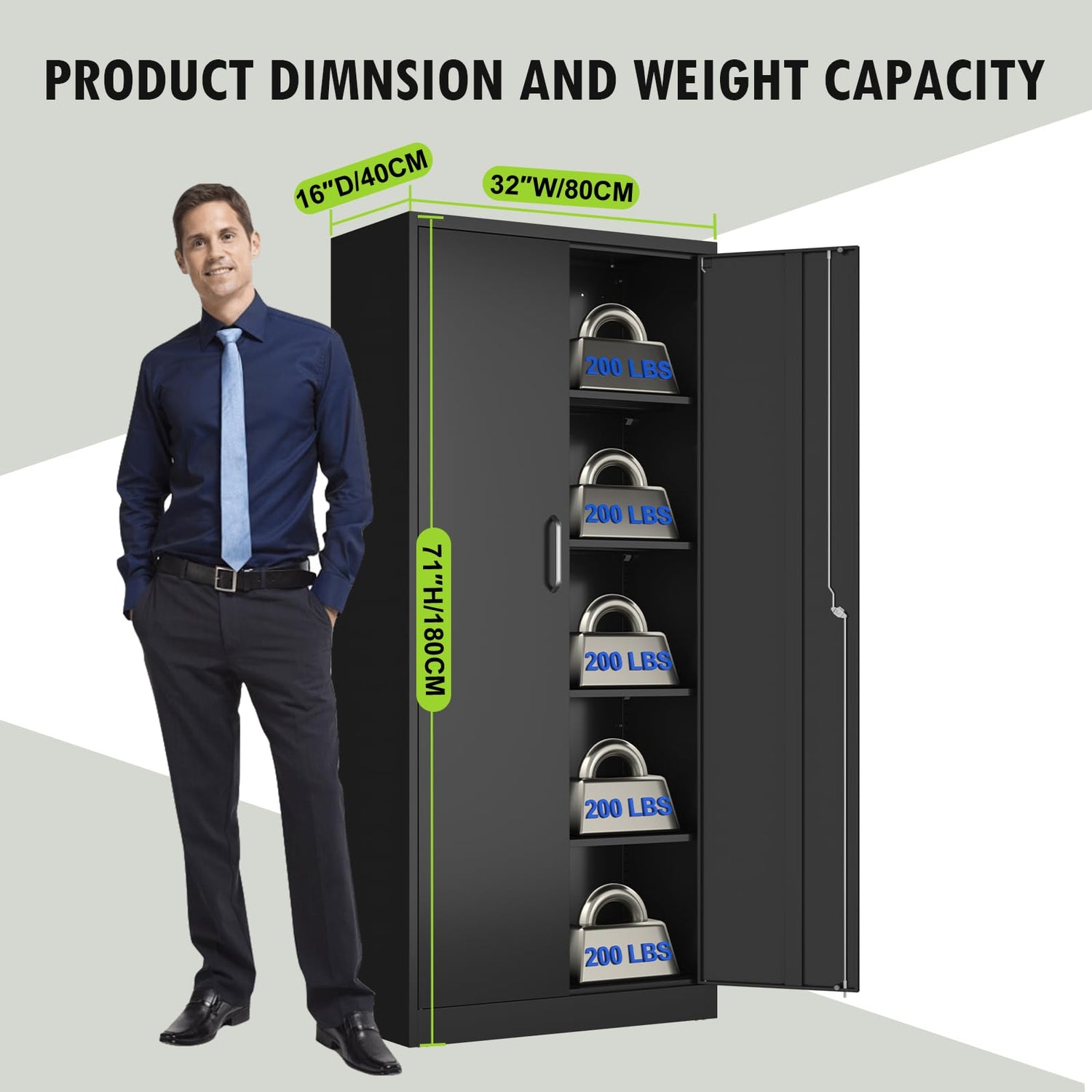 - AMPLE STORAGE SPACE: With its generous dimensions measuring 71"H x 32" W x 16" D, this metal file cabinet offers ample storage space. It features four adjustable shelves that can be customized according to your needs, each capable of holding up to 200 lbs weight capacity. Furthermore, there are two hooks inside the door for additional storage options