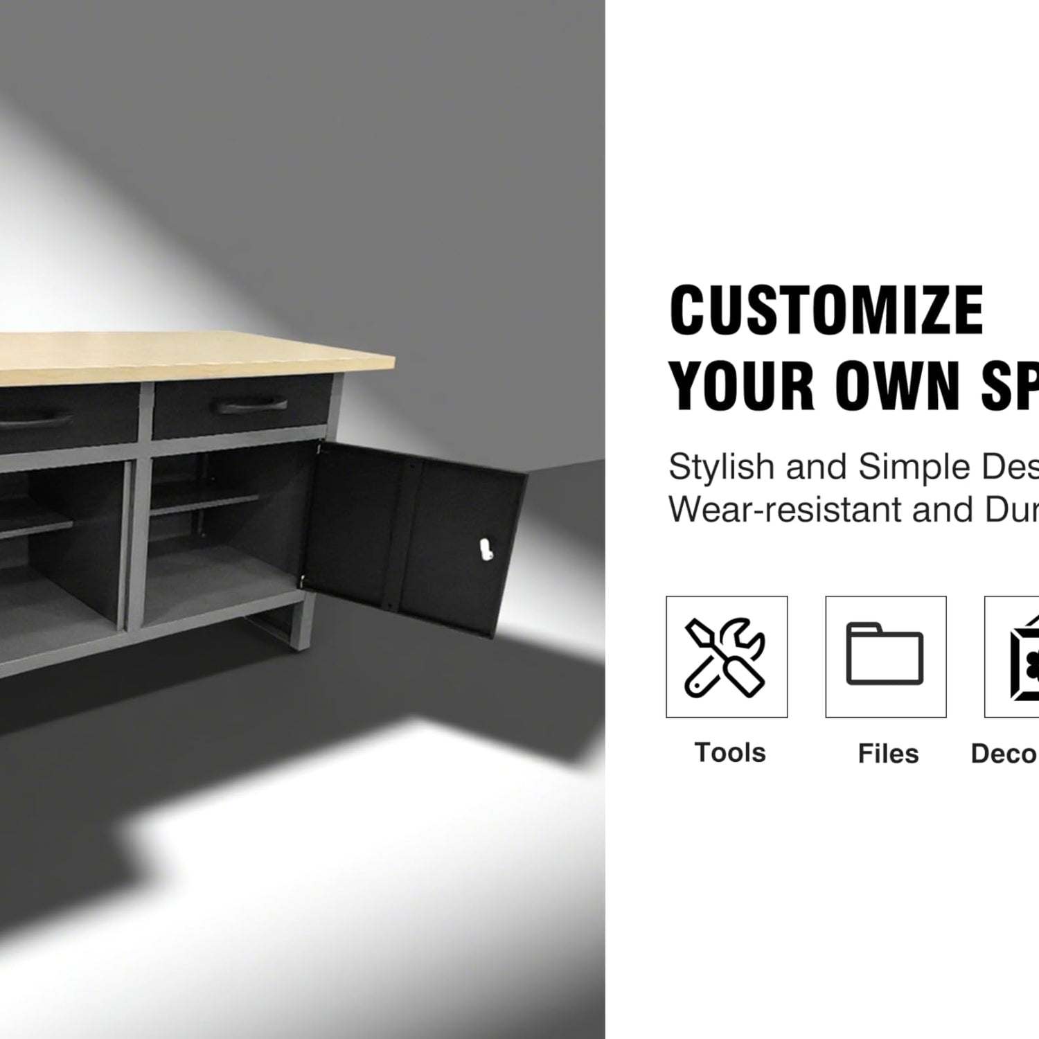 Garage Tool Storage Cabinet System with Wood Worktop, for Maintenance Rooms, Auto Repair Shops
