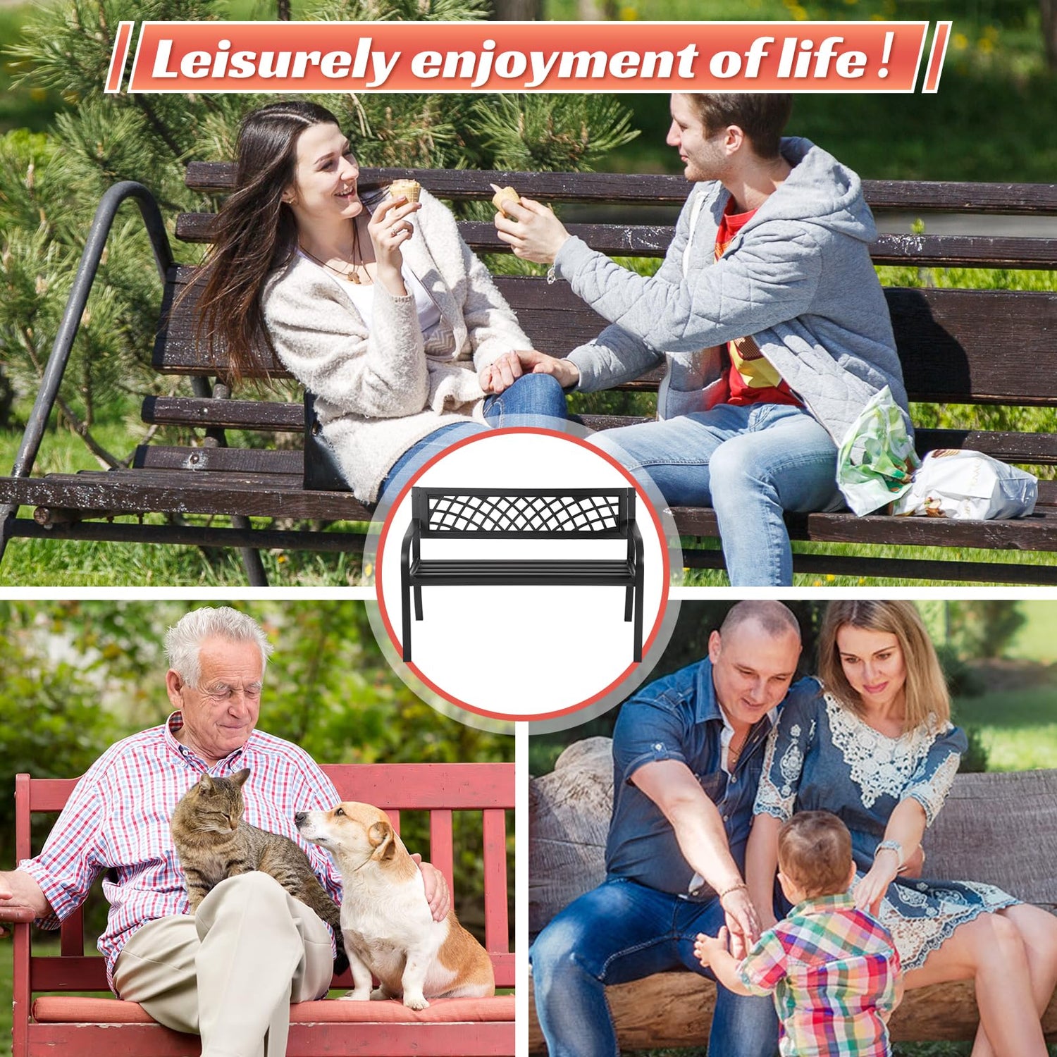 Garden Bench Patio Bench Outdoor Park Bench Metal Outside Porch Chair Seat Cast Iron Steel Frame Sturdy Bench Patio Furniture for Yard Porch Entryway Lawn Decor Deck, Black, 46 in