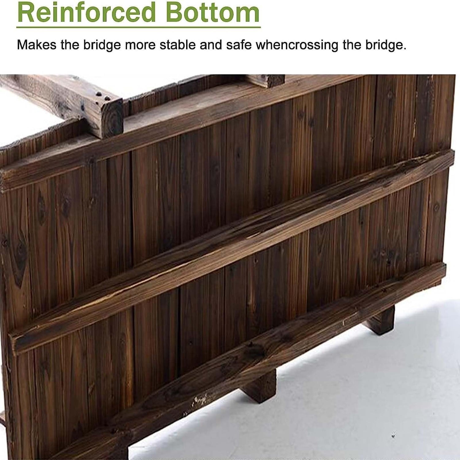 - 〖& DIY Fir MaterialThe material is solid fir with stained finish, providing better user experience. Carbonized treatment makes the cedar garden bridges can be used outdoors to resist bad weather.