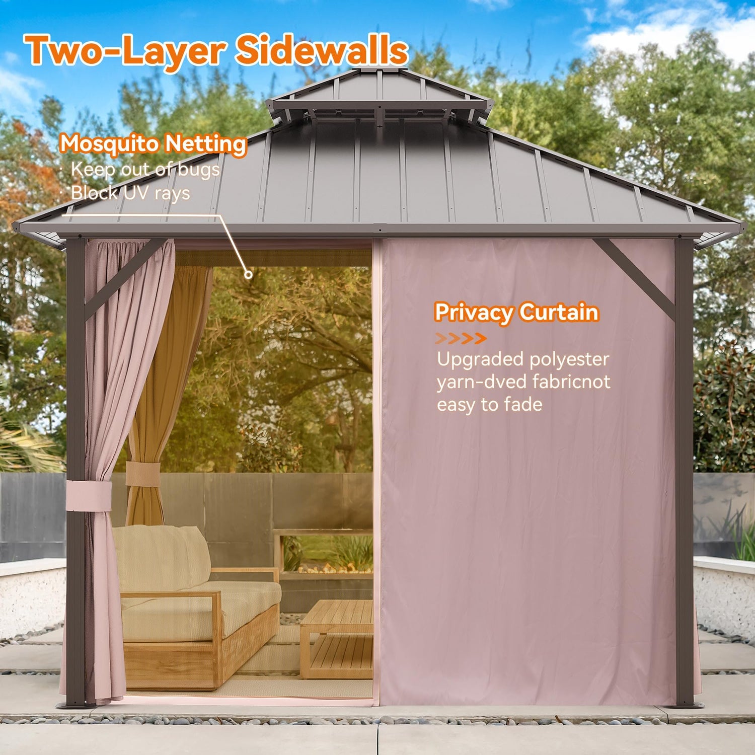 - 【Versatile Sidewalls for Ultimate Comfort】Our gazebo is equipped with versatile sidewalls. The inner mosquito netting keeps bugs at bay while provides good ventilation and an open view. Meanwhile, the outer privacy curtain, made of upgraded polyester so uneasy to fade, adds an extra layer of comfort, providing both privacy and an unobstructed view.