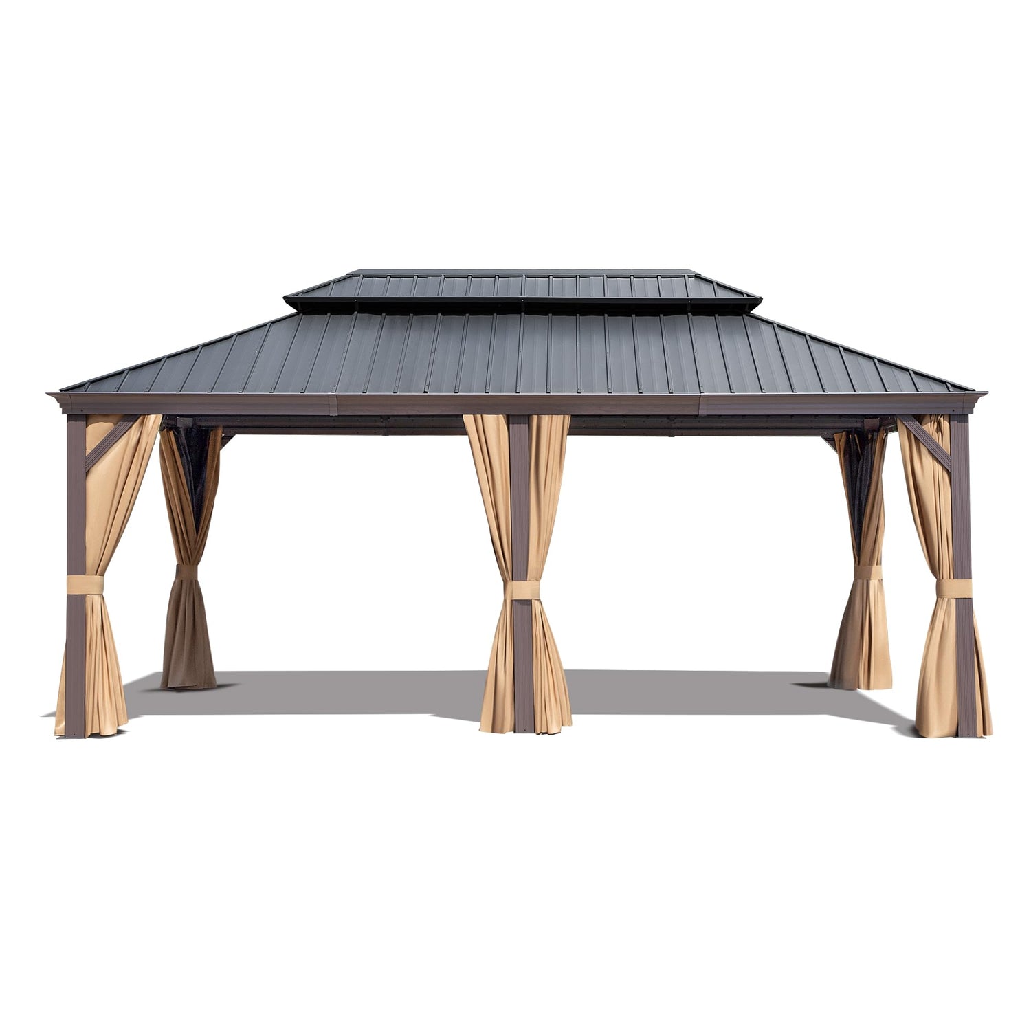Gardenbee 12x18 ft Gazebo Double Roof Canopy with Netting and Curtains, Outdoor Gazebo 2-Tier Hardtop Galvanized Aluminum Frame Garden Tent for Patio, Backyard, Deck and Lawns