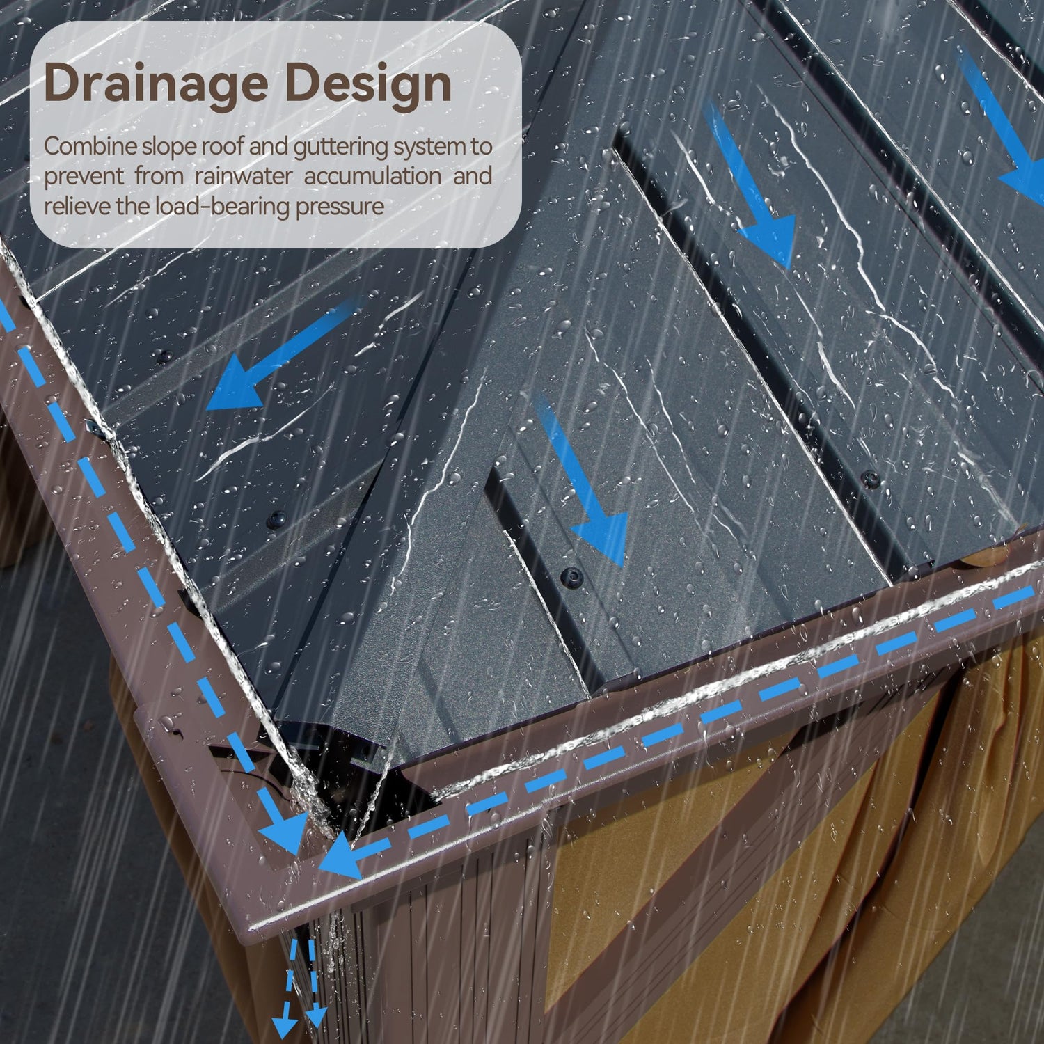 - 【Smart Water Gutter Design for Effortless Maintenance】Say goodbye to rainwater hassles with our gazebo's smart water gutter design. Seamless flow from eaves to the ground minimizes the impact of rain and snow, ensuring the gazebo remains in optimal condition and extends its lifespan