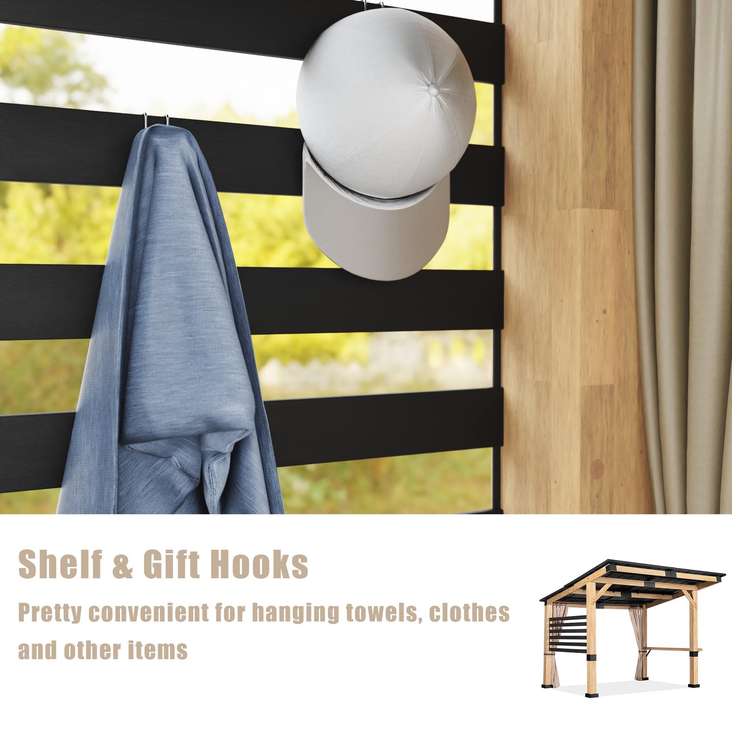 - Built-in hook and shelves: the ceiling hook built into the gazebo can meet your needs of hanging lamps, fans or other decorations, adding your own unique style to the gazebo, the two selves with complementary hooks can meet your storage needs to the greatest extent