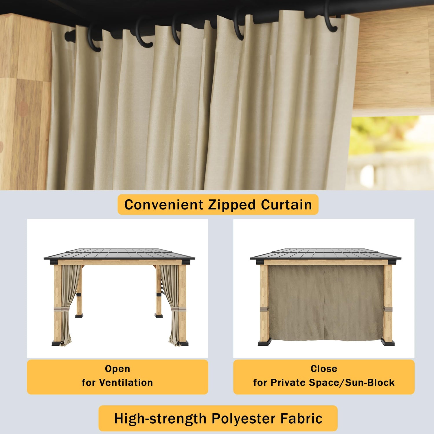 - Privacy curtain: this gazebo is equipped with curtains on one side to protect personal privacy and prevent from blazing sunlight, you also can put a jacuzzi in the gazebo to enjoy a sauna