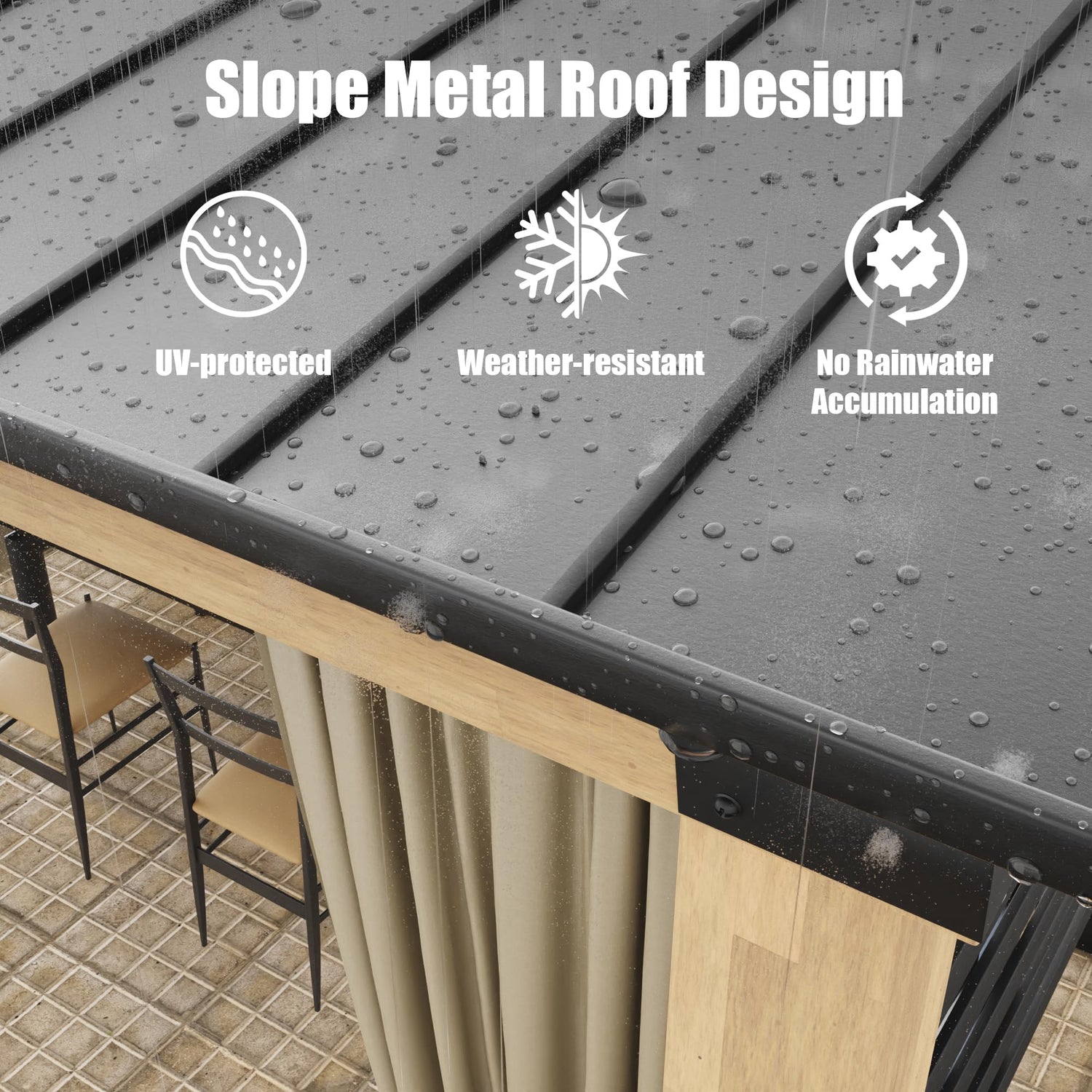 - Sloped roof design: our gazebo is designed with a galvanized steel sloped roof that can prevent from rainwater accumulation and relieve the load-bearing pressure, providing a shelter for your outdoor activities whether sunny or rainy, enjoy your outdoor leisure time every time